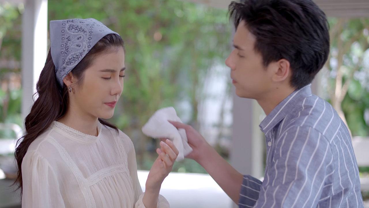 เป็นฉากที่ เจษพาหลานมาเรียนศิลปะกับเอสเธอร์ที่บ้าน แต่ระหว่างที่ทั้งคู่กำลังนั่งระบายสีอยู่ด้วยกัน จู่ๆ เจษดันเผลอทำน้ำล้างสีกระเด็นเข้าตาเอสเธอร์ จนเจษต้องรีบพาเอสเธอร์ไปล้างตาพร้อมเอาผ้ามาซับหน้าด้วยความเป็นห่วง
