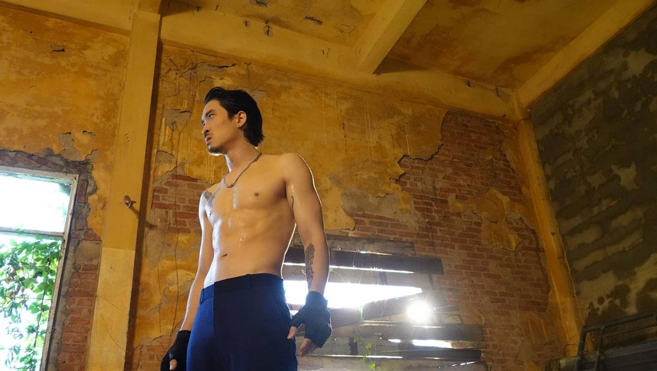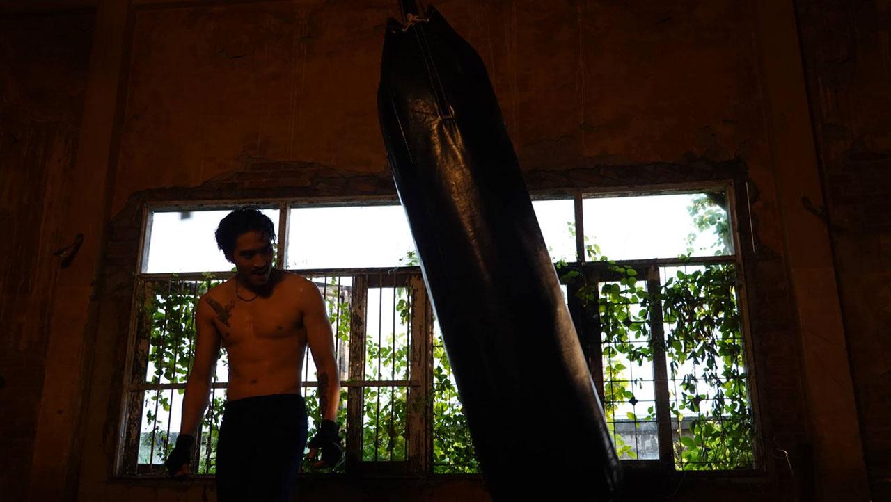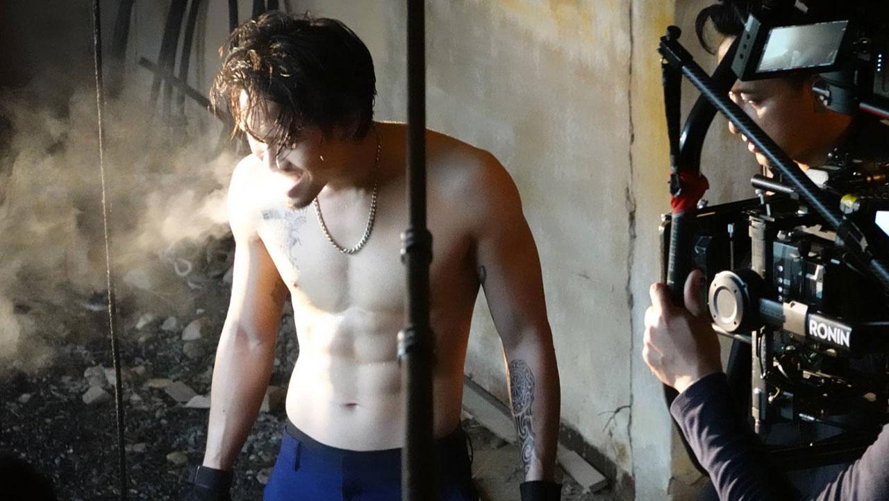 เมื่อทุกอย่างพร้อม การถ่ายทำก็เริ่มขึ้น ทีมกล้องขึ้นที่หน้าของหนุ่มเฟยที่กำลังมุ่งมั่นกับการซ้อมกระสอบทรายกับหุ่นที่ได้รูป กล้ามเป็นมัดๆ ซิกซ์แพ็กมาแน่นๆ กับอารมณ์ดาร์กๆ ทั้งต่อย ทั้งเตะ รัวหมัดแบบไม่ยั้ง สุดท้ายด้วยการกระโดดเตะจนหนำใจ