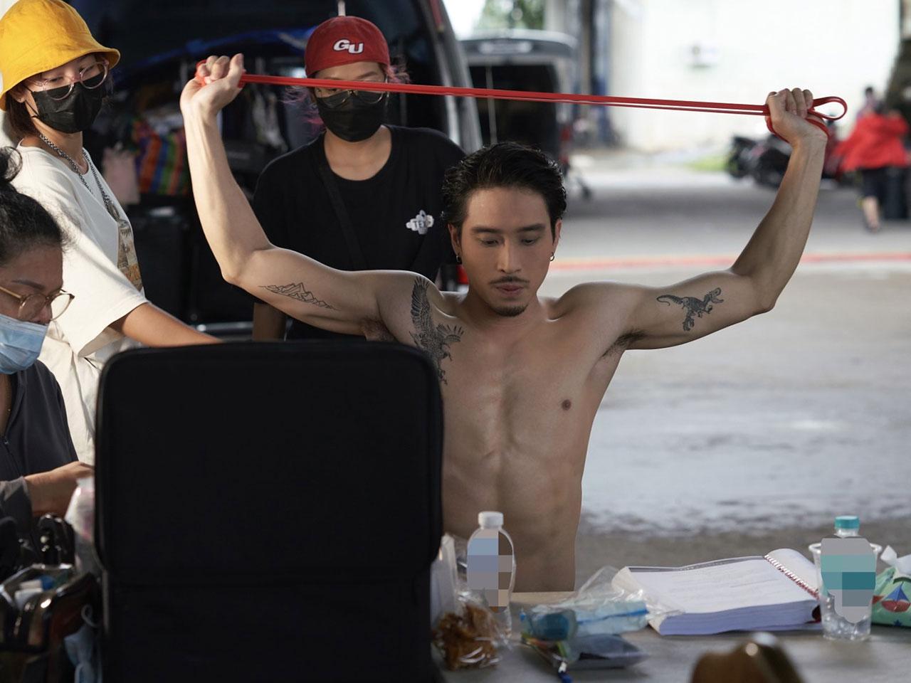 ก่อนถ่ายทำฉากนี้ หนุ่มเฟยต้องทำการบ้านอย่างหนักด้วยการฟิตหุ่น และกินคลีน เพื่อให้ได้หุ่นอย่างที่ผู้กำกับต้องการ ฉากนี้แสดงให้เห็นถึงด้านมืดของตัวละครที่ไม่เคยแพ้ให้กับสิ่งใด ไม่เกรงกลัวกฎหมาย และคิดว่าตัวเองใหญ่ที่สุด รองจากผู้เป็นพ่ออย่าง นาวิน (โอ๊ต วรวุฒิ)