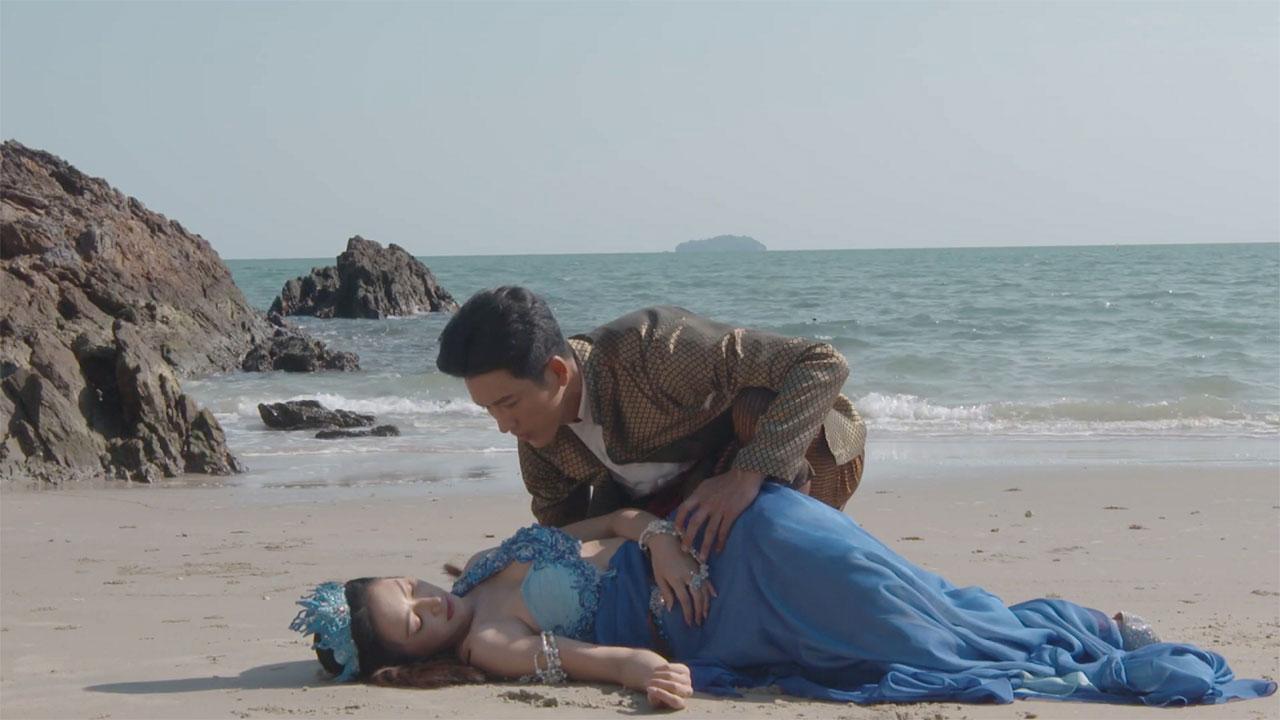 ถึงเวลาผู้กำกับ วิชิต วัฒนานนท์ เรียกทั้งกอล์ฟและยีนมาซักซ้อมคิวต่อบท ด้วยซีนนี้ นอกจากจะต้องเป็นซีนที่ลุ้นระทึก แต่ก็มีแอบปนความหวานไว้เบาๆ เพราะกอล์ฟต้องช่วยยีนที่สลบ และหลงใหลในความสวยจนเผลอเอาหน้าเข้ามาใกล้ เท่านั้นไม่พอ ยังจะได้เห็นยีนในลุคของการใส่หางนางเงือก บอกเลยว่าสวยงามละมุน แต่กว่าจะใส่กว่าจะถอด ยากสุดๆ แถมยังจะต้องลงไปว่ายสวยๆ ในทะเลอีก แถมวันนั้นคลื่นก็แรง การทรงตัวเลยค่อนข้างยาก ต้องยอมใจในความเก่งกาจของสาวยีน เพื่อแฟนละครใส่เต็มร้อยไปเลยค่ะ