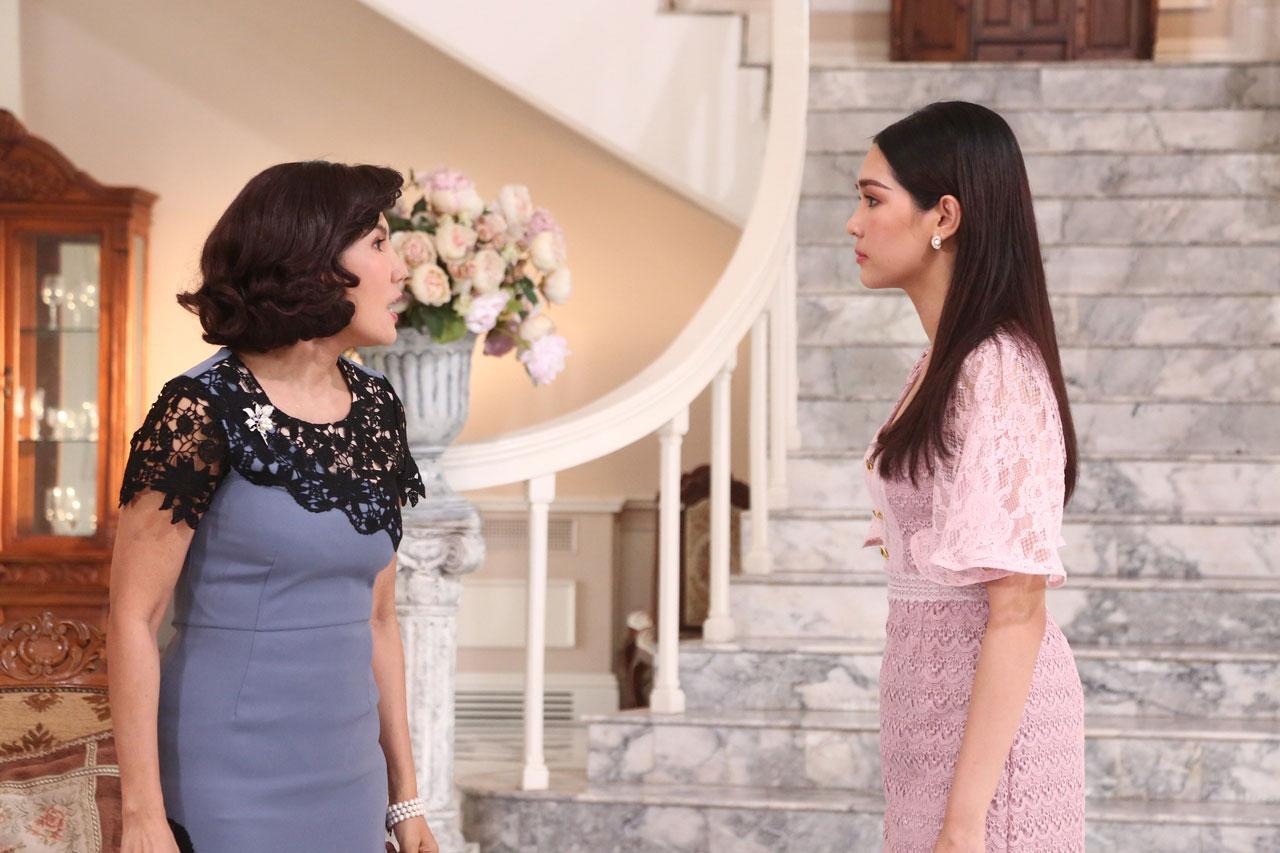 กับฉากที่ 2 แม่-ลูก คุณหญิงพจนิจ (แก้ว) กับ ม.ล.เพชราวสี (บิ๊นท์) มีปากเสียงกัน ถึงเรื่องที่ ม.ล.เพชราวสี ยืนกรานไม่ยอมกลับไปหมั้นกับ ชายภาส (นิว-ฐิติภูมิ) จนคุณหญิงพจนิจ ผู้เป็นแม่ถึงกับทนไม่ไหว โมโหตบตีลูกสาวกลางวัง