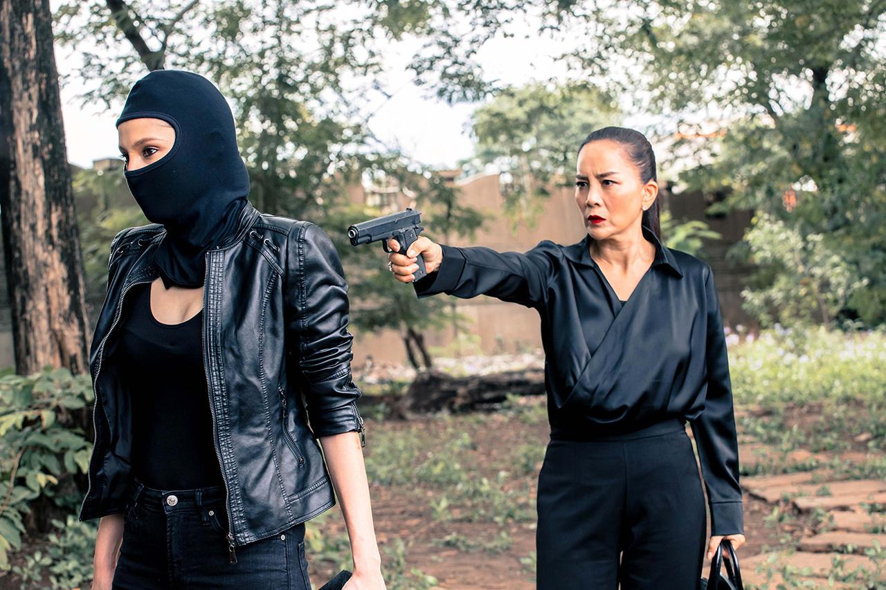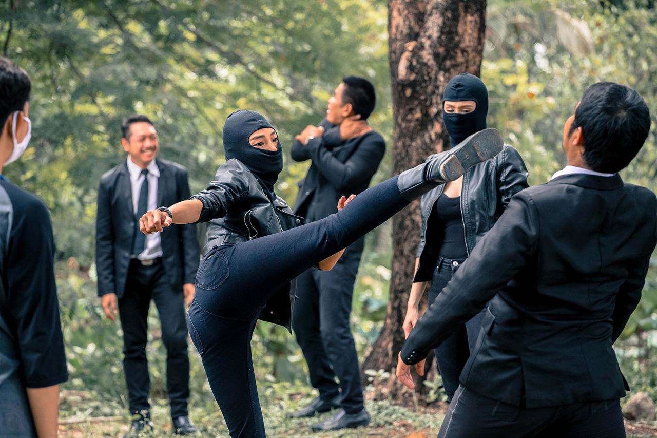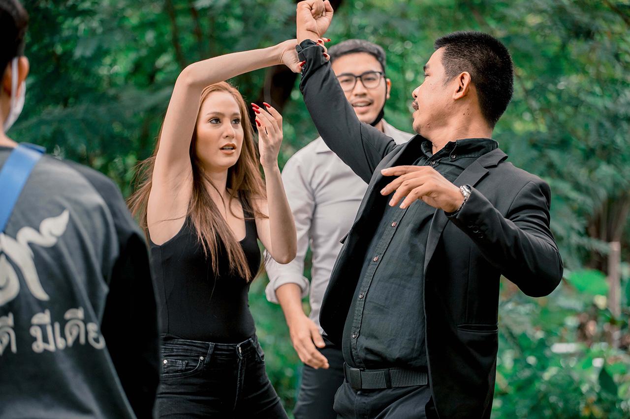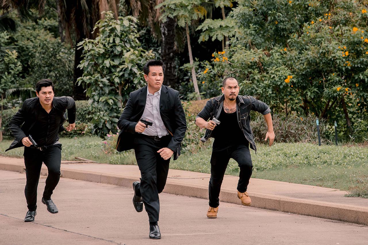 ถือว่าเป็นฉากใหญ่อีกฉากที่นักแสดงค่อนข้างเยอะ แล้วเป็นการบู๊ต่อเนื่องที่ค่อนข้างยาว ทำให้ทีมงานต้องมีการซักซ้อมคิวบู๊กันอย่างละเอียด เพื่อความปลอดภัยของทุกคนในการถ่ายทำ และใช้เวลาในการถ่ายทำค่อนข้างนานเลยทีเดียว เรียกว่าทุ่มเทกันสุดตัว เริ่มตั้งแต่ฉากปะทะกันที่ห้องใต้ดินของ ต้น อ่ำ ขวัญ และนุ้ย ทุกคนก็เตะต่อยกันได้อย่างคล่องแคล่วดุเดือดสมจริงมากแบบไม่แคร์พื้นที่แคบเลยทีเดียว แล้วไปต่อกันที่ฉากขวัญต้องปะทะคารมกับต่ายเพื่อชิงเพชร จนเกิดการปะทะกันชุลมุนวุ่นวาย แล้วขวัญก็ฉวยโอกาสรวบตัวโอมไว้เป็นตัวประกัน พร้อมชิงเพชรหนีไป ซึ่งพอผู้กำกับสั่งคัต ก็เล่นเอานักแสดงทุกคนหอบแฮกๆ รีบขอน้ำแดงทีมงานเพื่อเติมน้ำตาลเรียกพลังเป็นการด่วนเลยทันที