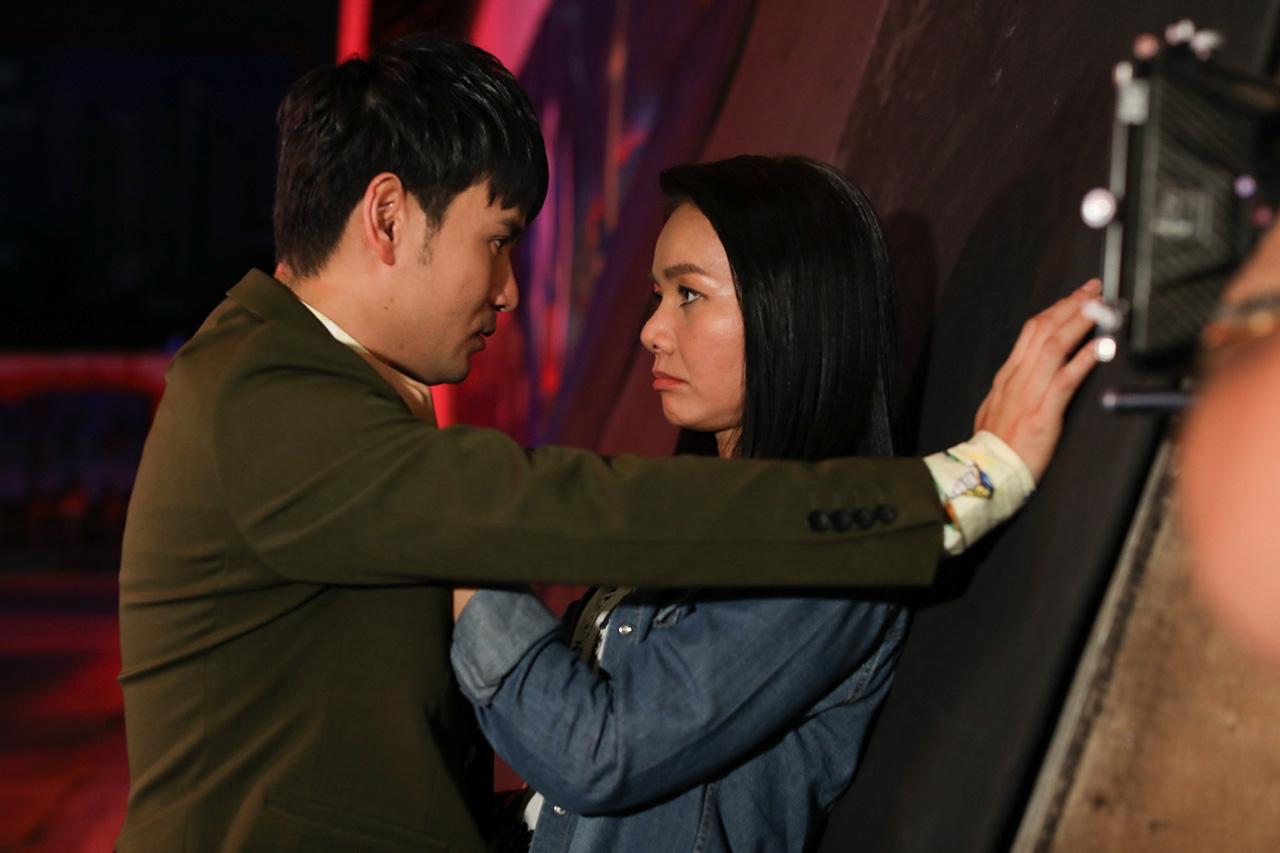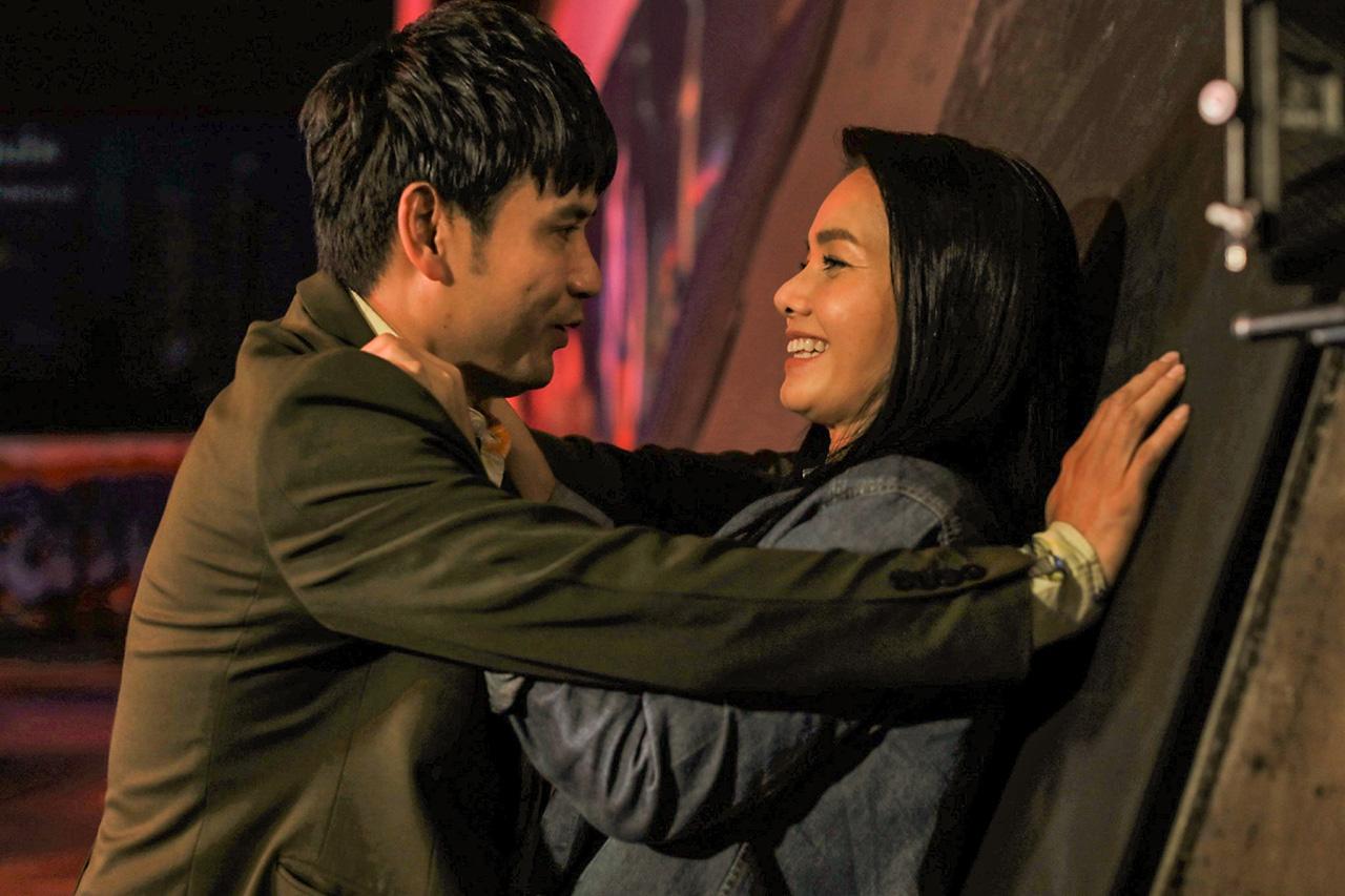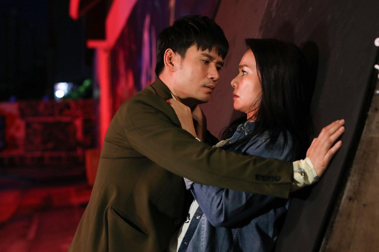 เป็นฉากที่ เจ้ย (ต่าย) กำลังมีเรื่องกับแก๊งเจ้าหนี้นอกระบบ เมื่อเห็นว่าสู้ไม่ไหว เจ้ยก็หาทางหนี หมวดเคน (ไผ่) ที่อยู่ใกล้ๆ เห็นต่ายร้องขอความช่วยเหลือ จึงรีบวิ่งตามไปช่วยทันที ซึ่งเบื้องหลังก่อนถ่ายทำ งานหนักจะตกไปอยู่ที่ต่ายซะส่วนใหญ่ เพราะจะต้องบู๊สู้ฟัด และยังต้องเสียจูบให้ไผ่อีก โดยเฉพาะชอตจูบ ผู้กำกับ ตั้ม-บรรเจิด เข้าไปบอกกับต่ายว่าอยากให้เล่นจริง เพราะอยากให้ภาพออกมาไม่หลอกตา ก็ทำเอาสาวต่ายแอบเหงื่อตกเบาๆ แต่ก็ยอมเล่นจริง เพราะก็อยากให้ภาพละครออกมาสวยงามเช่นกัน ส่วนคนที่ชิลสุดโชคสองชั้น คงต้องให้หนุ่มไผ่ เพราะไม่ต้องออกแรงบู๊ แถมยังยืนเฉยๆ ให้ต่ายจูบอีก แหม น่าอิจฉาจริงๆ