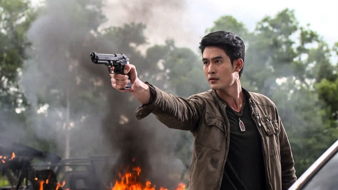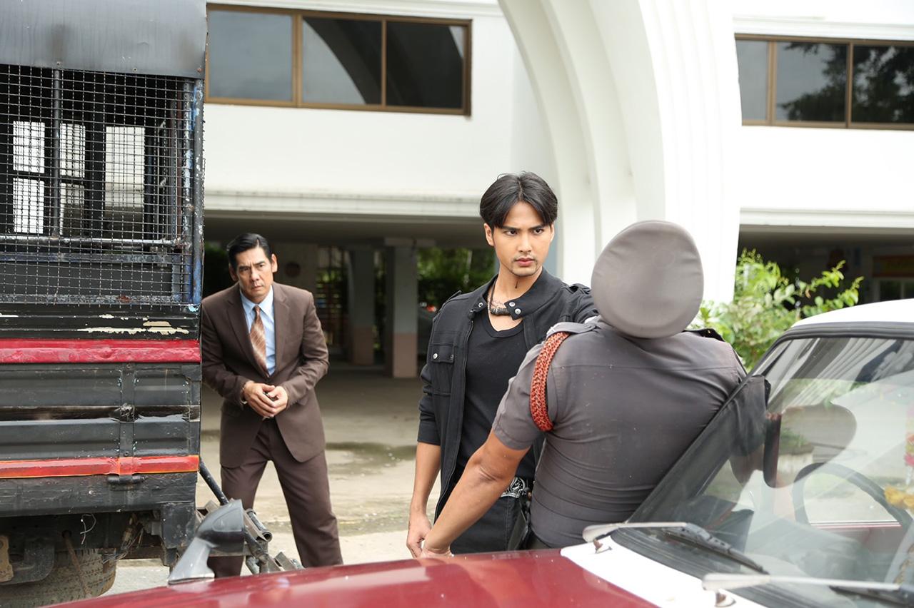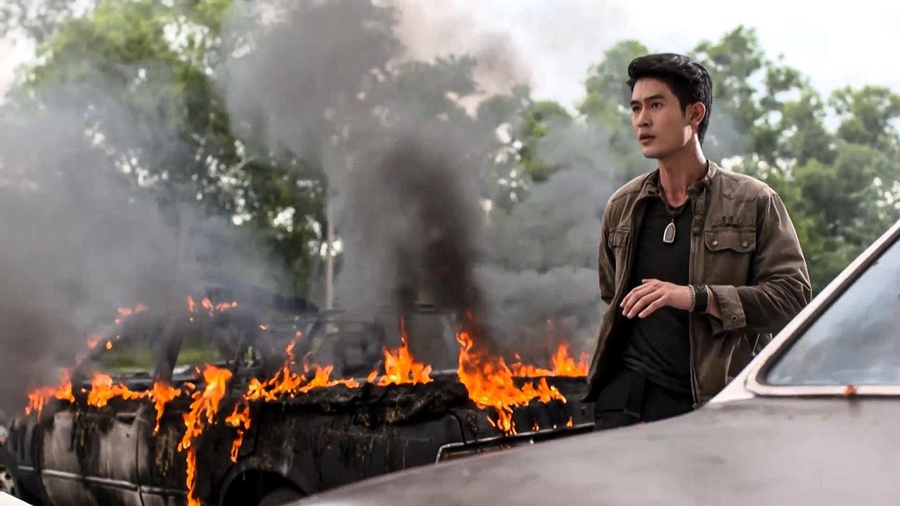 โดยฉากนี้เป็นฉากที่ เมฆา (ณัฐพล ไรยวงค์) ได้ส่งลูกน้องให้บุกมาที่ศาล เพื่อที่จะชิงตัว ผจญ (ทัตพงศ์ พงศทัต) พ่อของตนกลับไป ขณะนั้นฝั่งของ ชลดา (อัญรินทร์ ธีราธนันพัฒน์) ได้ยิงสกัดไว้ ทำให้การชิงตัวเกิดการชุลมุนขึ้น ขณะที่ชลดากำลังจะเสียท่า ในตอนนั้นเองก็มีชายแปลกหน้าวิ่งฝ่ากองไฟผ่านหน้าเธอ พุ่งใส่พวกของผจญล้มลง และก็เกิดการต่อสู้กัน ผู้ชายคนนั้นคือ เทิด ยอดธง (จิณณ์ จิณณะ) เทิดรีบมาดูอาการของชลดา ทั้งสองมองหน้ากันสักพัก จนชลดาเกิดความสงสัย เลยถามเทิดว่ามาจากหน่วยไหน แต่ในตอนนั้นภารกิจยังไม่สำเร็จ เทิดเลยบอกให้ชลดาหลบตรงนี้ก่อน เพราะเขาจะไปจัดการกับพวกที่เหลือเอง พอเทิดลุกขึ้นก็ได้เห็นเมฆาที่กำลังใช้วิชาในการทำร้ายตำรวจคนหนึ่งอยู่ ทำให้ทั้งสองได้ปะทะฝีมือกัน เลยทำให้รู้ว่าเมฆาไม่ธรรมดาแน่นอน