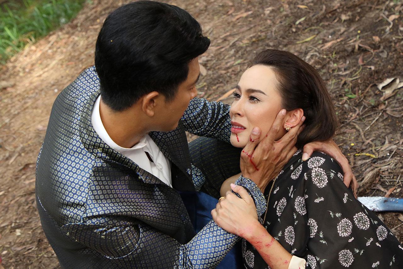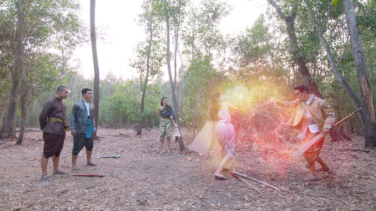 เบื้องหน้าห้ำหั่นดราม่าสุดติ่งแค่ไหน เบื้องหลังสุดยิ่งกว่า เพราะฉากนี้เป็นฉากใหญ่อีกหนึ่งฉากของเรื่องทั้งบู๊ ไล่ล่า ดราม่าจัดเต็ม แถมยังได้เห็น ซีจีต่างๆ ตระการตาแน่นอน บทหนักสุดคงตกไปอยู่ที่หนุ่มกอล์ฟ อนุวัฒน์ และ กิก ดนัย ที่ต้องแบกดาบที่หนักอึ้ง ฟาดฟันสู้กัน บวกกับลีลาบู๊ทั้งเตะและต่อย เท่แบบสุดๆ ส่วนสาวๆ ยีน กับมะลิ ก็มีหน้าที่ทำอารมณ์รอ เพราะซีนนี้ สาวมะลิ งัดความดราม่าน้ำตาพรากแบบจัดเต็ม บอกเลยว่า แฟนละครอาจจะต้องยอมใจอ่อนให้กับตัวร้ายอย่างสาวมะลิ ก็เป็นได้