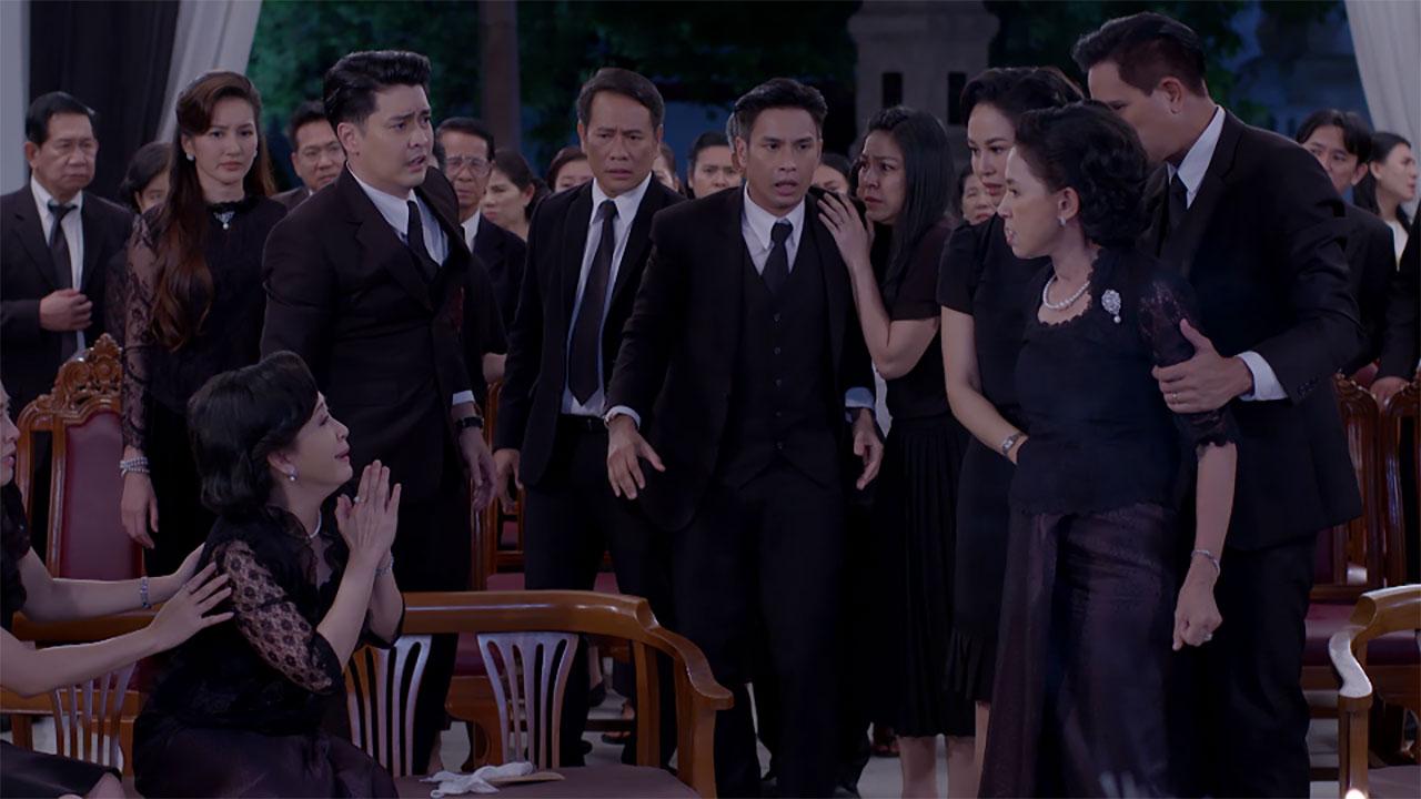 บอกเลยงานนี้แฟนๆ เตรียมหมั่นไส้ ต้องแท็กทีมรุมด่านังคุณนายดอก...รักกันอย่างแน่นอน แถมนั่งดูไปต้องแอบจิกหมอน คันไม้ คันมืออยากจะตบสักสองสามที เพราะซีนนี้เป็นเรื่องราวของคุณนายดอกรัก (กวาง กมลชนก) ที่สมหวัง อยากให้สามีอย่างพระยาบุญญานุภาพ (อาหมู ดิลก) ตาย เพราะกลัวความผิดที่แอบคบชู้ถูกเปิดเผย หลังจากที่พระยาบุญญานุภาพตาย ดอกรักก็แอบฮุบสมบัติของใบศรี (จอย ศิริลักษณ์) และลูกๆ มาเป็นของตัวเองคนเดียว และทำตีหน้าเศร้านั่งร้องไห้ในงานศพ ให้นวยนาด (ต่อง สาวิตรี) โดนชาวบ้านต่อว่า แต่งตัวสวยมางานศพสามีที่เพิ่งตาย