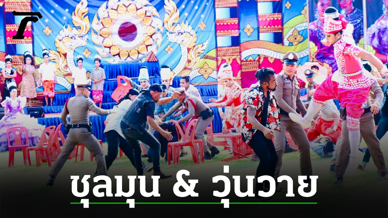 หลังจากที่หม่ำร้องเพลงอย่างสนุกสนาน มีแฟนๆ ขึ้นมาเต้นกับสาวรำวงอย่างคึกคัก พอลงจากเวทีไปได้ไม่นาน คณะลิเกกับคณะรำวง ก็เปิดเวทีมวยกันกลางลานวัดหลาย 10 คู่ เพราะโฆษกฝั่งเวทีรำวง พูดชวนตีตลอด เป็นใครได้ฟังก็ทนไม่ได้ และยังเปิดลำโพงดัง กลบเสียงลำโพงของคณะลิเก