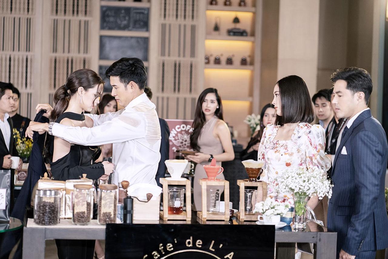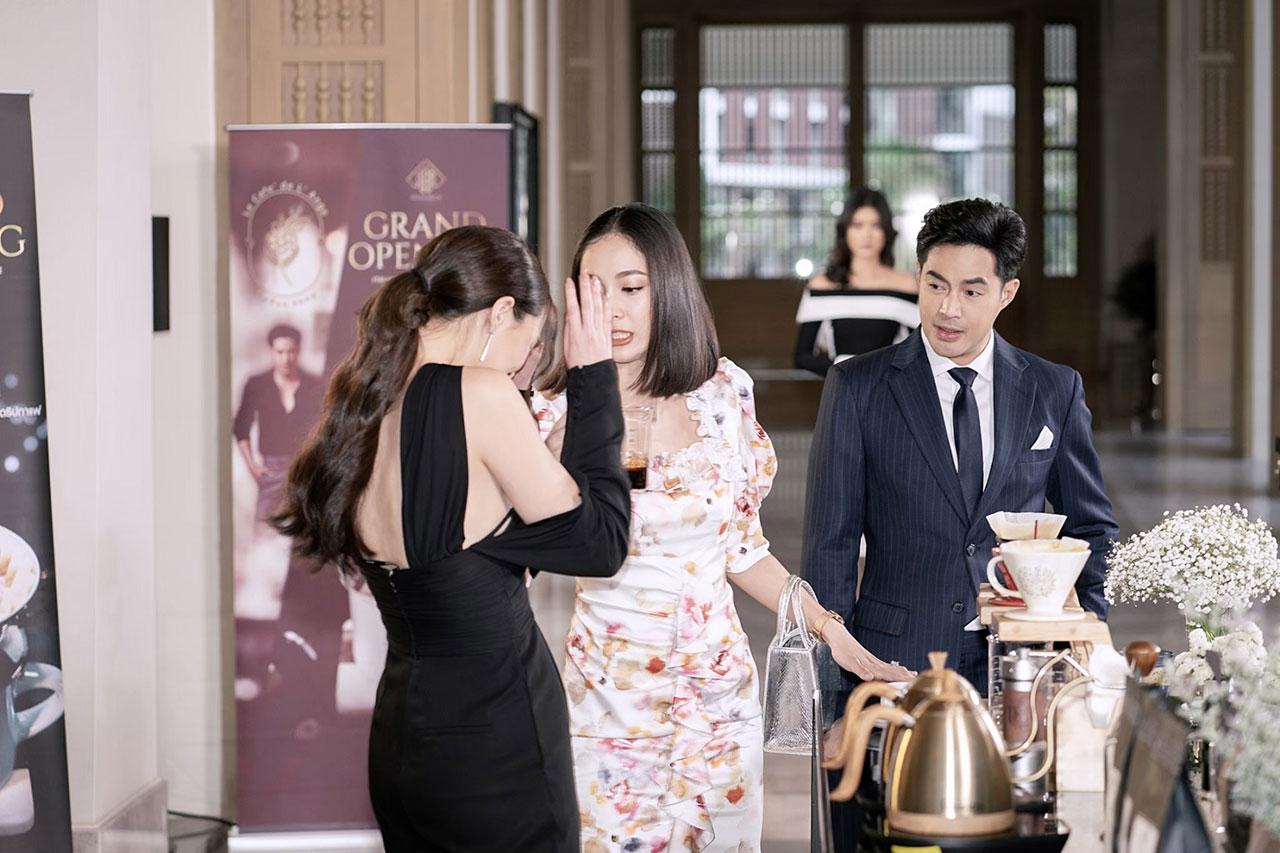 และสำหรับวันพุธ วันสงกรานต์นี้ก็มีฉากแซ่บ มาให้ชมกันต่อ โดยเป็นตอนที่ตฤณ (ท็อป จรณ โสรัตน์) เปิดมุมร้านกาแฟภายในโรงแรม แอบเมียพิมพ์ผกา (แพร พิชชาภา พันธุมจินดา) ชวนปาริฉัตร (แพทริเซีย ธัญชนก กู๊ด) มาร่วมเปิดงานด้วย ให้ปาริฉัตรสาธิตการดริปกาแฟด้วย แต่ขณะที่งานดำเนินไป พิมพ์ผกา กับพิมพ์อัปสร (โยเกิร์ต ณัฐฐชาช์ บุญประชม) ก็เดินเข้ามาในงาน พิมพ์ผกามองสามีตฤณ ด้วยความหึงหวง ท่าทางหัวร้อนมาเลย แต่เก็บอาการ แต่พอเข้าไปใกล้ปาริฉัตร แกล้งจะเทกาแฟมาชิม แต่กลับสาดใส่ปาริฉัตรแบบเต็มๆ ดีที่พายุ (เกรท วรินทร ปัญหกาญจน์) ผ่านมาเห็น วิ่งเข้ามากอดปาริฉัตร และรับกาแฟนร้อนๆ ไปเต็มหลัง ส่วนปาริฉัตรโดนแค่นิดหน่อย แต่ก็ยังเป็นรอยผื่นแดง ทำเอาโกลาหล ทั้งพนักงานและแขกมองกันยกใหญ่ พายุ รีบประกาศตัวว่าปาริฉัตรเป็นแฟนของเขา และไม่ยอมให้ใครมาทำร้ายปาริฉัตรเด็ดขาด ก่อนจะพากลับ