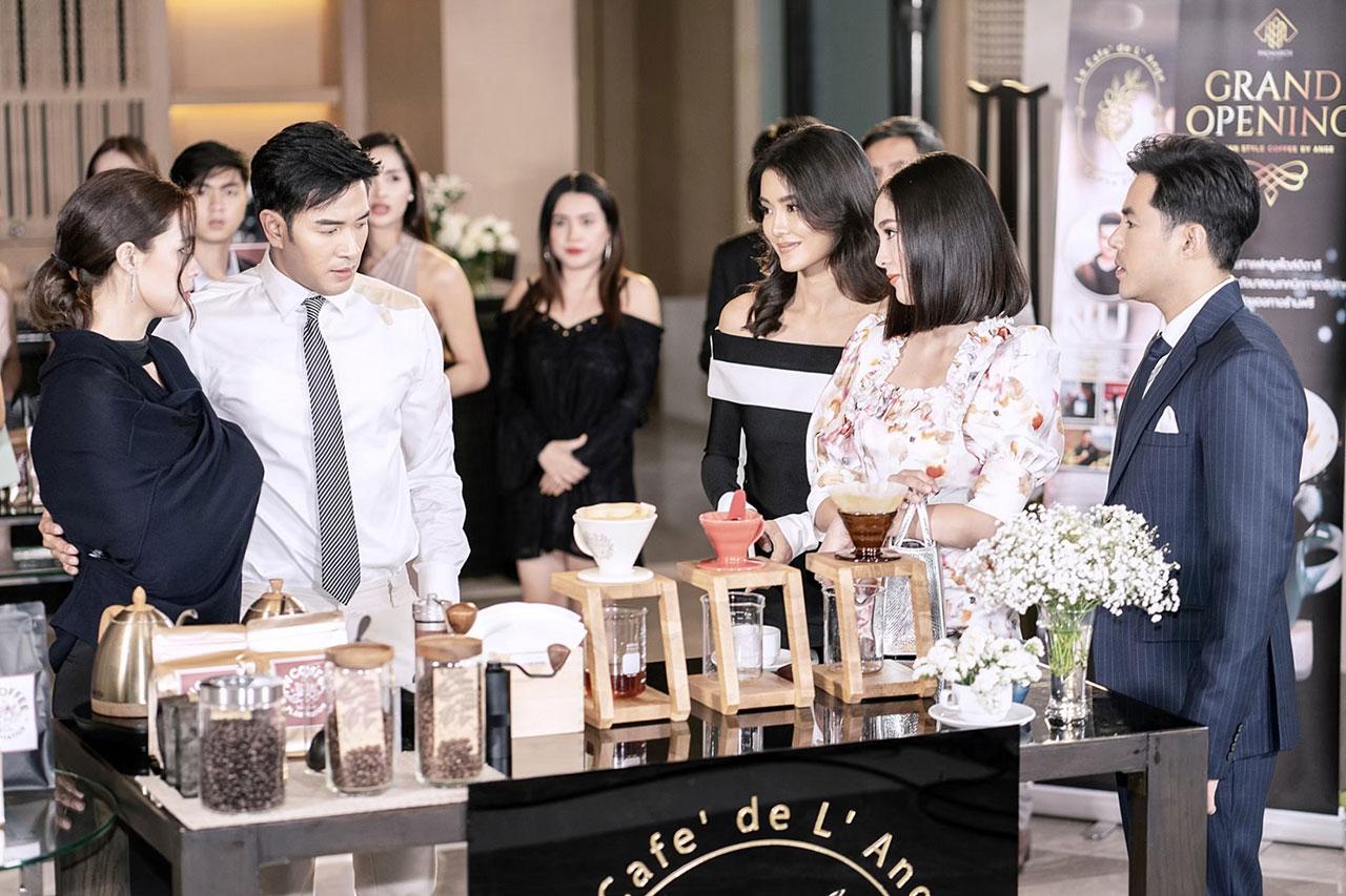 ฉากนี้ถ่ายทำกันที่โรงแรมเลอเมอริเดียน สุวรรณภูมิ ทีมงานต้องเซตห้องให้เป็นร้านกาแฟ บรรยากาศสวยงาม นักแสดงก็แต่งตัวกันแบบจัดเต็ม สวยงาม โดยเฉพาะสาวแพทริเซีย ที่แต่งสวย เซ็กซี่มาก เดินถือดอกไม้ช่อใหญ่มามอบให้กับ ท็อป จรณ เจ้าของงาม ทำเอาหนุ่มท็อป ใจละลาย รักหลง สาวแพทเลยทีเดียว ดริปกาแฟกันไป ส่งสายตากันไป แต่งงานกร่อย เมื่อสาวแพร กับ โยเกิร์ตไปถึง สายตาของแพร นั้นมาเต็ม พร้อมจะเข่นฆ่าคนที่ยุ่งกับสามี เพราะผัวข้าใครอย่าแตะ มาถึงก็สาดกาแฟร้อนใส่เลย โดยมีเกรท มาช่วยรับน้ำกาแฟด้วย ส่วนโยเกิร์ต ก็ยิ้มสะใจอยู่ข้างๆ ฉากนี้ผู้กำกับ วุ้น ทรงศักดิ์ ต้องบล็อกคิวกันให้แม่นยำ ทั้งคิวกอด คิวสาด ให้ลงตัว ไม่อย่างนั้นมุมภาพจะไม่สวยงาม
