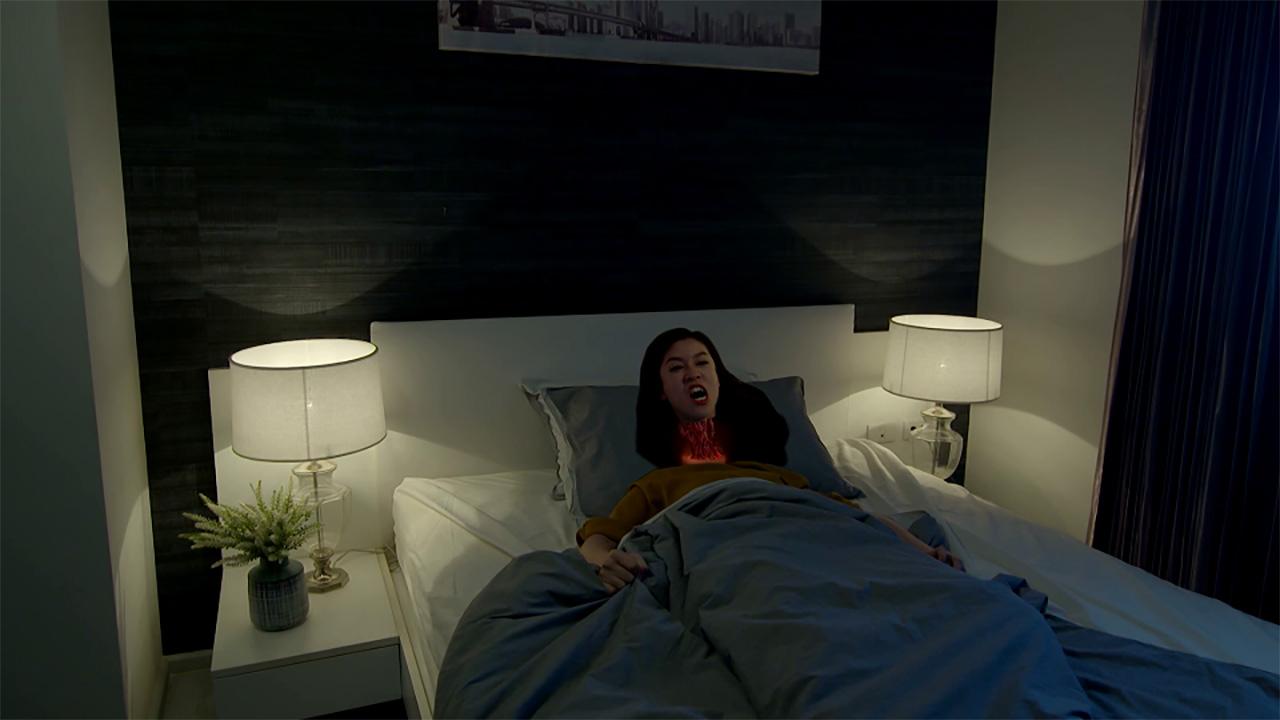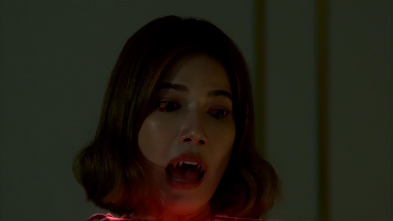 โดยเป็นฉากที่ นินะ (เชียร์-ฑิฆัมพร) เริ่มมีอาการเจ็บคอนอนทรมาน ด้าน พาฝัน (น้ำหวาน-กรรณาภรณ์) ก็เริ่มมีอาการเจ็บต้นคอนอนกระสับกระส่าย จนเวลาเที่ยงคืนทำให้ทั้งคู่ถอดหัวออกอมาพร้อมกันและออกล่าโดยไม่รู้ตัว แถมงานนี้ก็ดันมีชาวบ้านคนเมืองพบเห็นและเป็นข่าวใหญ่ว่า มีคนพบแสงสีแดงประหลาดคล้ายผีกระสือ ลอยอยู่กลางกรุง ซีนนี้บอกเลยว่าถึงแม้นักแสดงจะมีแค่สองคน แต่ความยากความโหดก็ไม่แพ้ฉากไหนๆ เพราะเป็นการถอดหัวครั้งแรกของสองสาว และมีเรื่องราวของเอฟเฟกต์ ซีจีเข้ามาเกี่ยวข้อง ทำให้การถ่ายทำค่อนข้างจะยาวนาน
