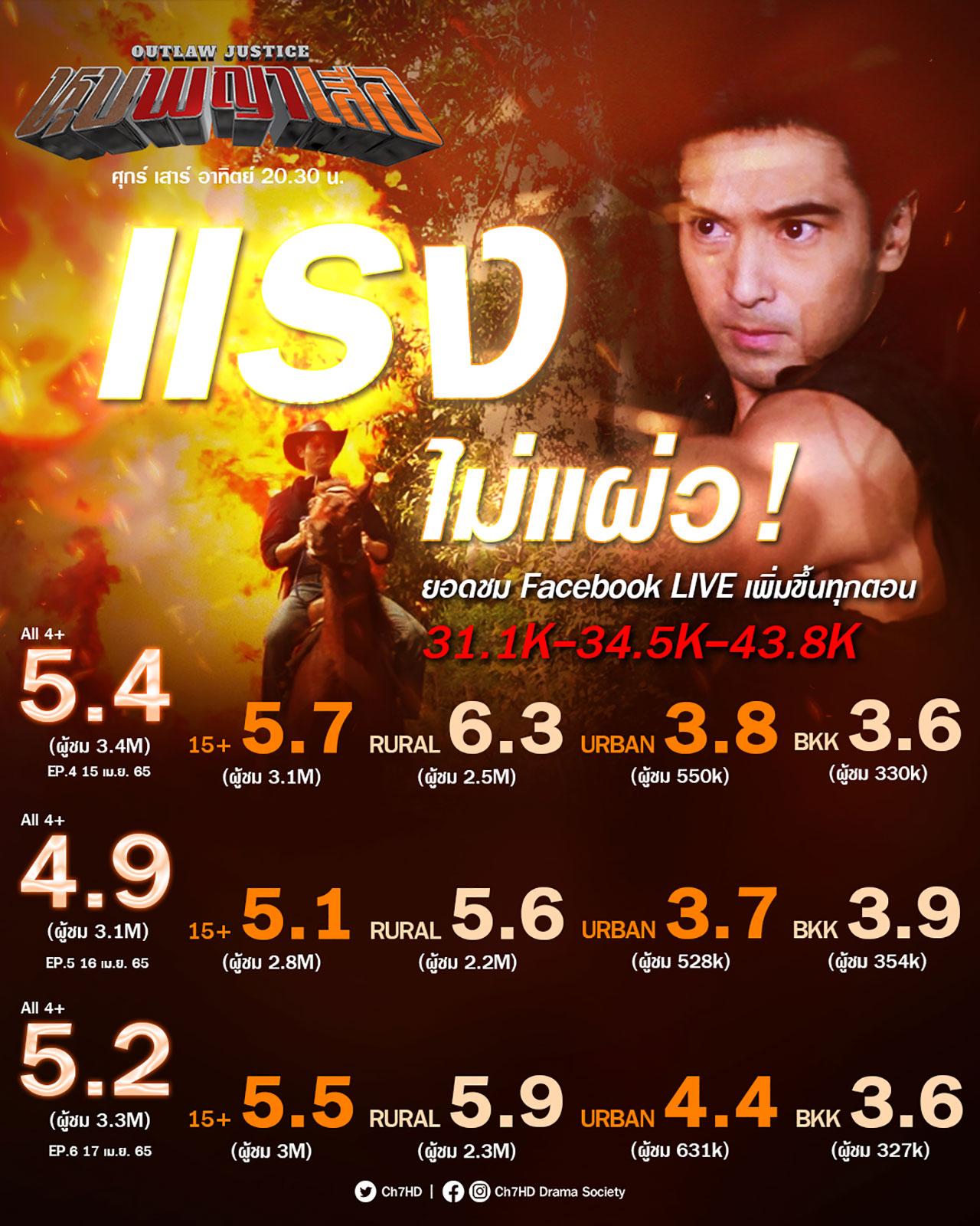 หลังคว้าแชมป์ละครเรตติ้งเปิดตัวสูงสุดแห่งปี 2565 มาครองเป็นที่เรียบร้อย วันนี้ละครแอ็กชั่นดราม่า “หุบพญาเสือ” ยังคงเดินหน้าสร้างความสนุกทุกสุดสัปดาห์ โดยสัปดาห์ล่าสุดคว้าเรตติ้งสูงสุดไปได้ที่ 5.4 (ข้อมูลวันที่ 15 เมษายน 2565) โดยมียอดชม Facebook LIVE เพิ่มขึ้นทุกตอน สูงสุดที่ 43.8K (ข้อมูลวันที่ 17 เมษายน 2565)