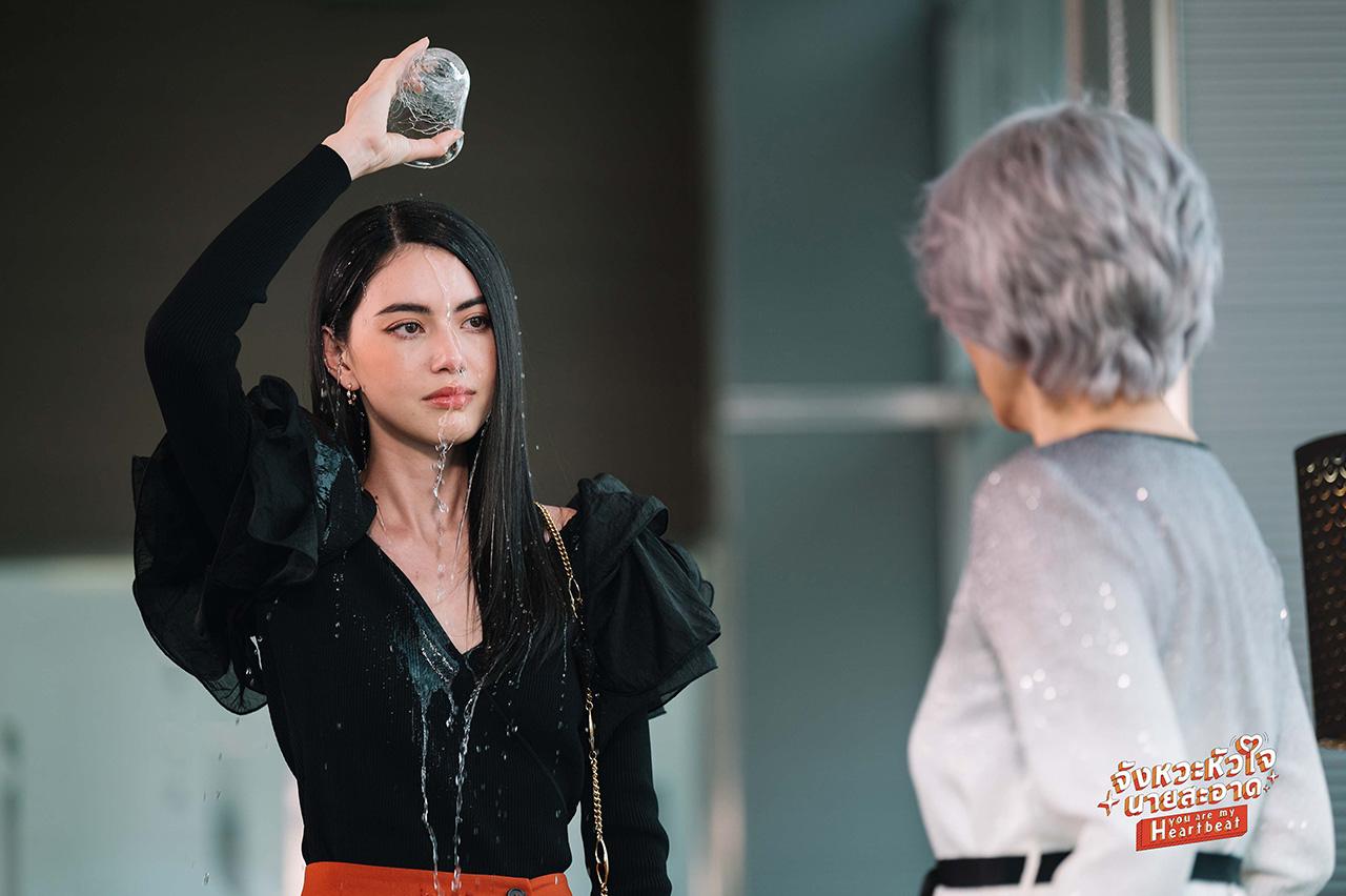 โดยฉากนี้เป็นตอนที่ คีติกา-กังหัน โกรธมากที่ เปรมยุดา เป็นตัวการทำให้อาการป่วยโรคหัวใจของ พารินทร์ (กิ๊ก-มยุริญ ผ่องผุดพันธ์) แม่ของเธอกำเริบ เธอจึงบุกไปต่อว่าเปรมยุดา แล้วทั้งคู่ฟาดกันไปมาด้วยวาจาและสายตาแผ่รังสีอำมหิต แต่กังหันหัวไว ใช้แผนลึกล้ำงัดมารยาหญิงเรียกร้องความเห็นใจต่อหน้า ศิระ-ลม (พุฒ พุฒิชัย เกษตรสิน) กับ ศาสะ-ดิน (แจ๊คกี้ - จักริน กังวานเกียรติชัย) และเหล่าพนักงาน ด้วยการเทน้ำราดหัวตัวเองแบบสวยๆ เชิ่ดๆ ชนะเลิศคุณย่าไปเลยทีเดียว ซึ่งก่อนถ่ายทำทั้ง ต่าย และ ใหม่ ต่างซักซ้อมคิว ต่อบทกันอย่างขะมักเขม้น เป็นภาพที่น่ารัก ที่นักแสดงรุ่นใหญ่รุ่นน้อง ช่วยกันดีไซน์การแสดง ช่วยกันส่งพลังให้กันก่อนถ่ายจริงๆ ซึ่งพอทุกฝ่ายพร้อม ผู้กำกับก็สั่งให้เริ่มถ่ายทำจริง โดยทั้งคู่ก็สวมวิญญาณเป็นตัวละครทันที อินเนอร์มาเต็ม ฟาดฝีปากปะทะคารมกันอย่างดุเดือดตามไดอะล็อกเป๊ะๆ