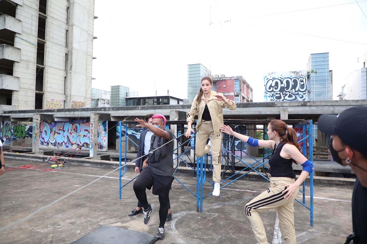 ฉากนี้ หลักเขต วสิกชาติ ผู้กำกับ สั่งทีมงานเซฟเรื่องความปลอดภัยอย่างดี เพราะเคนและวิว ต้องโหนสลิงลอยตัวจากตึกหนึ่งไปอีกตึก แถมยังต้องบู๊เตะต่อยในตึกร้าง ฉากนี้ วิวฟิตร่างกายมาเต็มที่ เพราะต้องบู๊เตะ ต่อย แบบคอมโบ้เซต หนุ่มเคนแม้จะบู๊ไม่หนัก แต่ก็ฟิตกล้ามขา มาเพื่อวิ่งหนีกระสุนจนฝุ่นตลบ