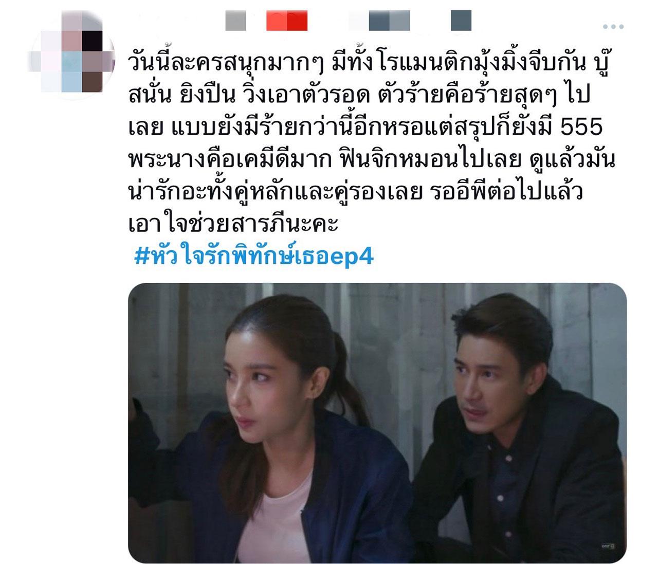 ส่วนบทแอ็กชันมีบ้าง เป็นแบบสู้มา สู้กลับ แต่ไม่เยอะเท่าสารภี (วิว วรรณรท) อีกหนึ่งความอดทนของผม คือเวลาเข้าฉากกับ เฟิร์น พัสกร, ตั้ม วราวุธ, พี่ต๊อก ศุภกร, พี่เจี๊ยบ เชิญยิ้ม ทีมนี้ทำผมขำไหล่สั่นตลอด ส่วนเลิฟซีนก็มีพอน่ารัก จูบตามความรู้สึกล้วนๆ ละครเรื่องนี้เป็นแอ็กชันที่ดุเดือด แต่มุมสนุก น่ารักเยอะมาก มีหลากหลายรสชาติ รับรองลุ้นกันจนสนุกแน่นอนครับ”