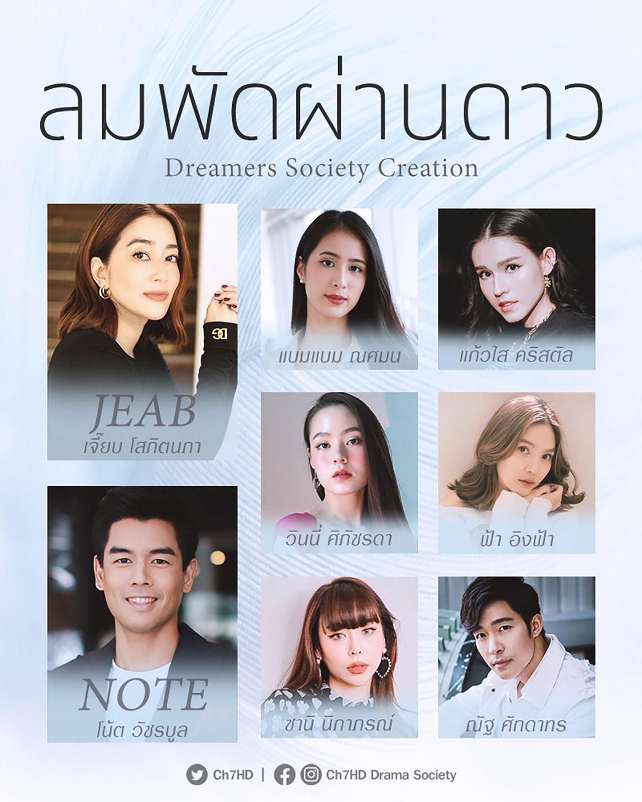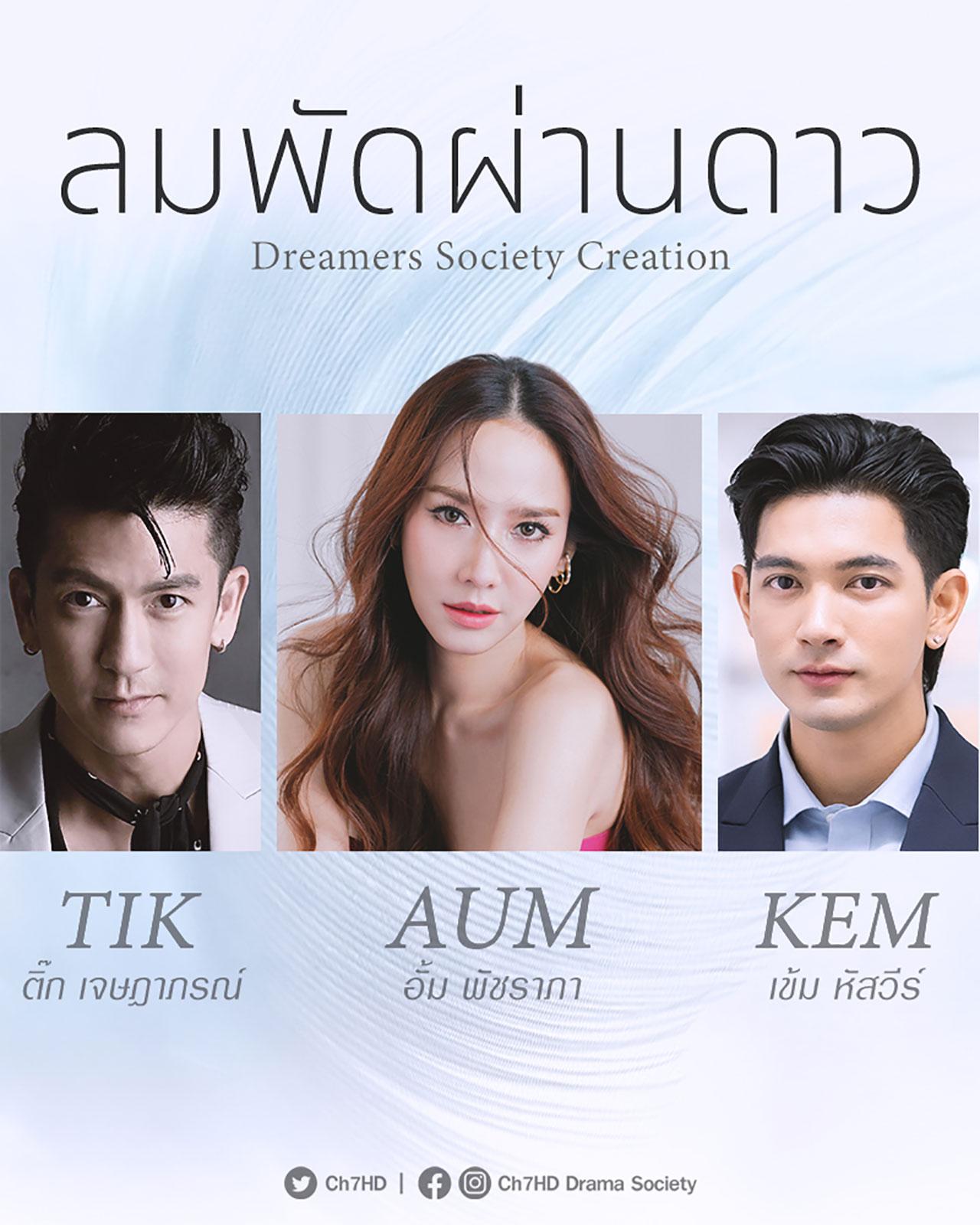 หลังจาก ติ๊ก-เจษฎาภรณ์ ผลดี ตั้งโต๊ะเปิดใจให้สัมภาษณ์กับทัพสื่อมวลชน ณ สตูดิโอ ช่อง 7HD หลังบันทึกเทปรายการ ฮัลโหลซุปตาร์ ว่า เตรียมทำหน้าที่ผู้จัดละคร ค่าย ดรีมเมอร์ส โซไซตี้ ครีเอชั่น ประเดิมด้วยโปรเจกต์ละครแนวโรแมนติกดราม่า ลมพัดผ่านดาว จากบทประพันธ์อมตะของ ว.วินิจฉัยกุล พร้อมกับเปิดโผนักแสดงที่ทำเอาทุกคนร้องว้าว! เพราะงานนี้ ผู้จัดสุดหล่อจะรีเทิร์นกลับมาร่วมงานกับ นางเอกซุป'ตาร์เบอร์หนึ่ง อั้ม-พัชราภา ไชยเชื้อ อีกครั้ง หลังจากที่ทั้งคู่เคยฝากผลงาน เรื่อง นางสาวจริงใจกับนายแสนดี ไว้เมื่อ 18 ปีที่ผ่านมา แถมในโผยังมีรายชื่อของพระเอกสุดฮอต เข้ม-หัสวีร์ ภัคพงษ์ไพศาล ที่จะมาร่วมงานด้วยเป็นครั้งแรก รวมทั้งยังเปิดโผนักแสดงอื่นๆ ด้วย เพียงเท่านี้โลกโซเชียลก็ร้อนระอุ แฮชแท็ก ลมพัดผ่านดาว และแฮชแท็ก bigsurpriseอั้มติ๊กเข้ม ก็ขึ้นเทรนด์ทวิตประเทศไทยทันที