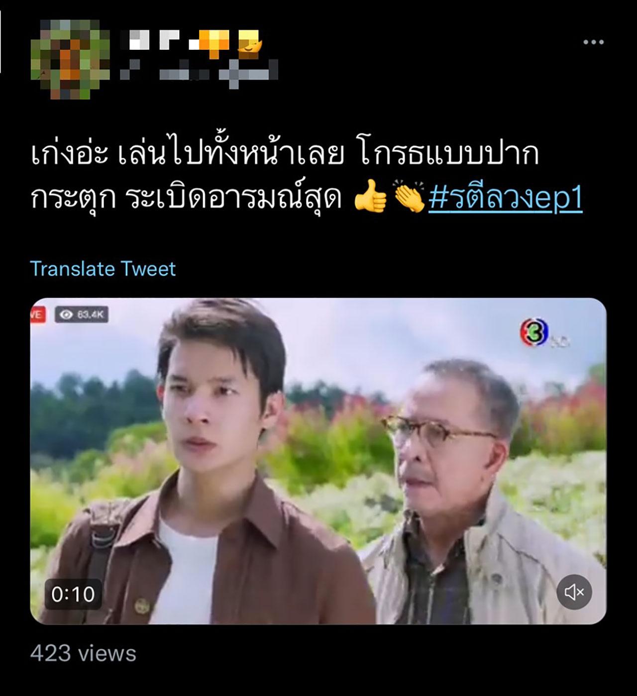 ออกอากาศให้ได้ชมกันไปถึง 2 ตอน ต้องบอกว่ากระแสปังสุดๆ งานนี้ผู้จัดอย่าง “น้องพรสุดา ต่ายเนาว์คง” เป็นปลื้มอยู่ไม่น้อยกับคำอวยที่ส่งมาไม่หยุด กับการดำเนินเรื่องที่ดูเร็วกระชับ มุมภาพสวย แสงดี และไฮไลต์โลเกชั่นทุ่งดอกเก๊กฮวยที่สวยบาดตาจนอยากจะแพ็กกระเป๋าวาร์ป นอกจากนี้การแสดงของนักแสดงทั้งรุ่นเล็กรุ่นใหญ่ก็ใส่หนักจัดเต็มไม่แพ้กัน ฟาดอารมณ์ดราม่าเสียน้ำตาบีบหัวใจสุดๆ หรือการอู๋คำเมืองของ 2 พี่น้อง ชิปปี้-แคท ที่ต้องยกนิ้วให้ และกลายเป็นที่น่าจับตามองอยู่ไม่น้อยสำหรับสาวแคทที่มารับบทเป็นสาวเจ้าเสน่ห์ที่หนีหายไปหลังพ่อพระเอกตาย!