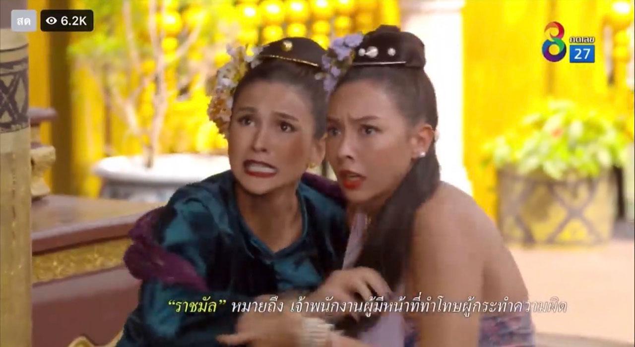 กับอีกฉากที่ เจ้าแสนดา (พิมพ์พรรณ) ตบสั่งสอนสองแม่ลูกเจ้ายองตมานกับยองตยาที่บังอาจแอบนินทา ด่าหลับหลังเจ้าตัว โดยตัวละครยองตมานได้มีวลีเด็ดจิกกัดเจ้าแสนดาว่า “แหม เสด็จมาแบบไม่ให้รู้เนื้อ รู้ตัวเลยนะเพคะ อีบ้า อีแฮ่น อีชาติหมา อีสารเลว !! ฯลฯ และด้วยอินเนอร์การด่า ต่างๆ มันถึงใจแต่ความโป๊ะอยู่ที่ ด่าลับหลังยังไงให้คนโดนด่าได้ยิน ย้อนกลับมาเล่นงานคืนได้อีกครั้ง ทำให้หลายคนแซวซีนนี้ว่า จะด่าลับหลังใครก็ดูให้ดีๆ ว่าเค้าไปแล้วจริงหรือเปล่า มิเช่นนั้นจะโดนตอกกลับแบบจุกๆ อย่างสองแม่ลูกนะจ๊ะ!