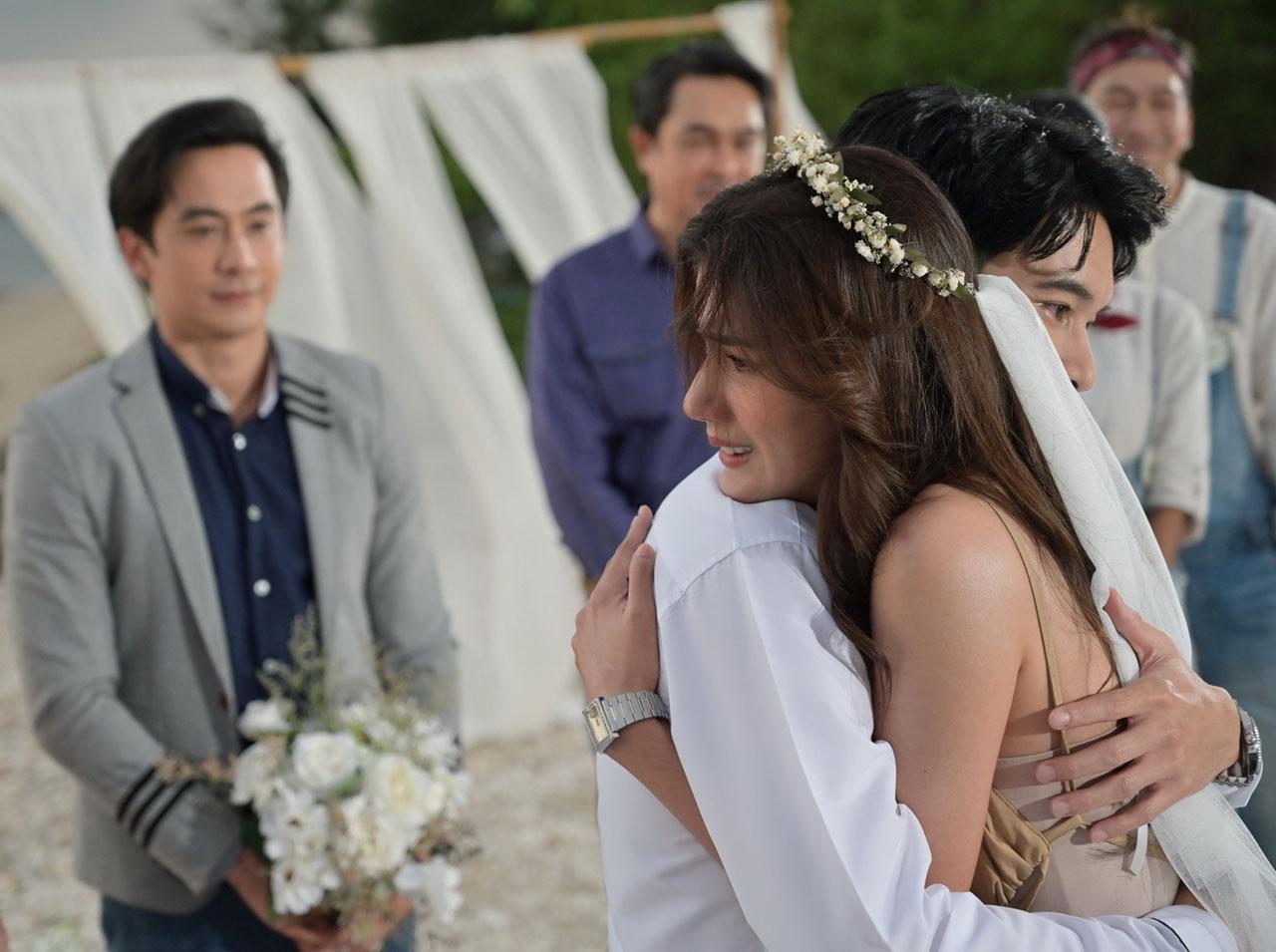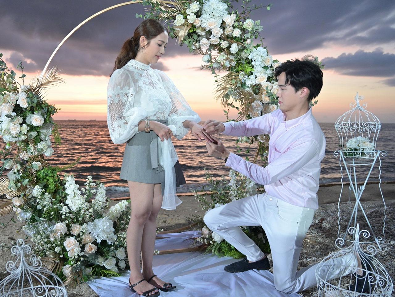 ฉากพร้อม นักแสดงพร้อม ผู้กำกับก็เรียกรวมพลมาซ้อมกันหน้าเซต พอรู้จังหวะกันคร่าวๆ ก็เริ่มลงมือถ่ายทำจริง “แม็กกี้” ปิดตา “พิ้งค์พลอย” แล้วพาเดินออกมา พอเอาผ้าปิดตาออก “น้ำว้า” (ฐาปนีย์ ศุภรัตนาภิรักษ์) ก็สวมเวลให้ว่าที่เจ้าสาวแสนสวย ส่วน “อ๊อฟ” ก็หวานตามบทเป๊ะคุกเข่าบอกรัก “แต่งงานกับพี่นะ” แล้วสวมแหวนให้ ช่วงที่ “อ๊อฟ” กับ “พิ้งค์พลอย” กอดทำซึ้งกันอยู่ จู่ๆ “โก้” ก็ประกาศหมั้นกับ “แม็กกี้” แบบฟ้าฟาดซะงั้น แล้วเอาแหวนมาสวมนิ้วให้ ทำเอาทุกคนงงตาแตก!