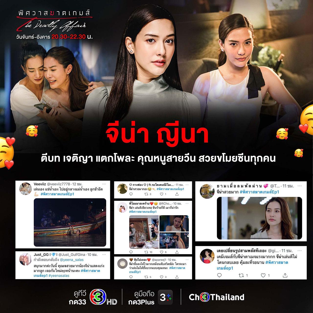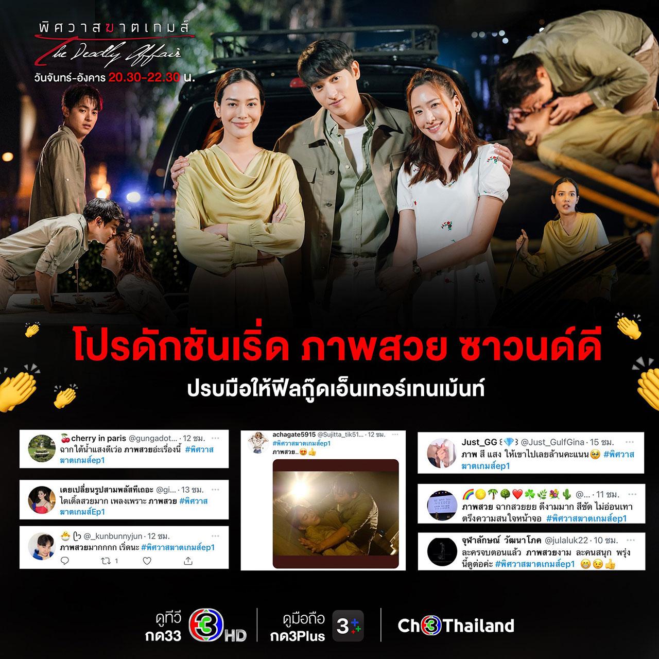 เรียกว่าเป็นการโชว์ฝีมือทางการแสดงของ เจมส์ จิรายุ และ จีน่า ญีนา จริงๆ เปิดตอนแรกมาปังขนาดนี้ เตรียมแย่งรีโมตเปิดดู “พิศวาสฆาตเกมส์” ตอนต่อไปได้เลย ทุกวันจันทร์-อังคาร เวลา 20.30 น. ดูทีวีกด 33 ดูมือถือกด 3Plus