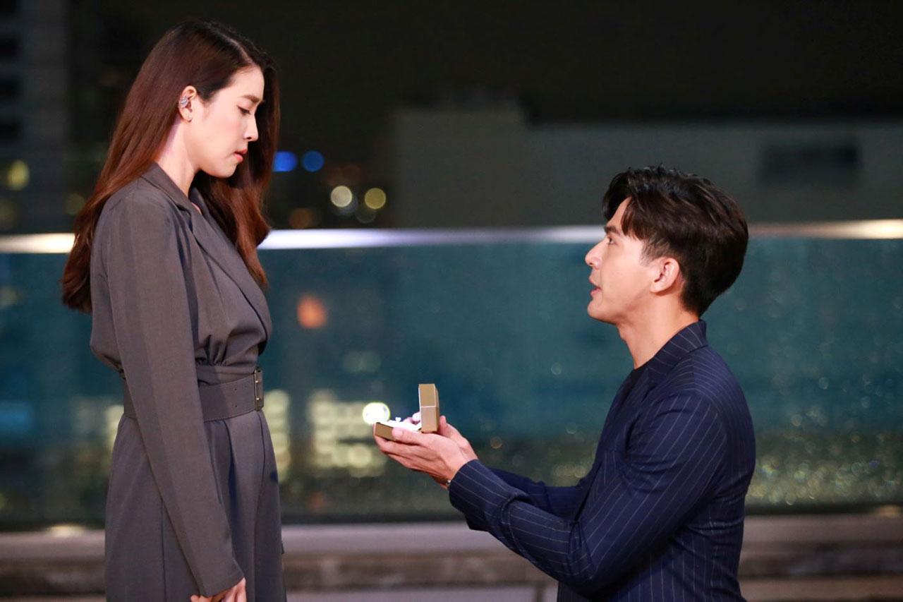แต่เมื่อเธอขึ้นไปกลับพบเขาอยู่บนดาดฟ้าเหมือนกัน เขาบอกว่ากะจะมาเซอร์ไพรส์และขอเธอแต่งงาน มุกมณีที่รอวันนี้มานาน พอเจอเข้าจริงๆ กลับพูดไม่ออก น้ำตาเอ่อล้นด้วยความดีใจ ชินกฤตบรรจงสวมแหวนให้เธอ ก่อนที่ทั้งสองจะจูบกันใต้แสงจันทร์ที่สาดส่องมา