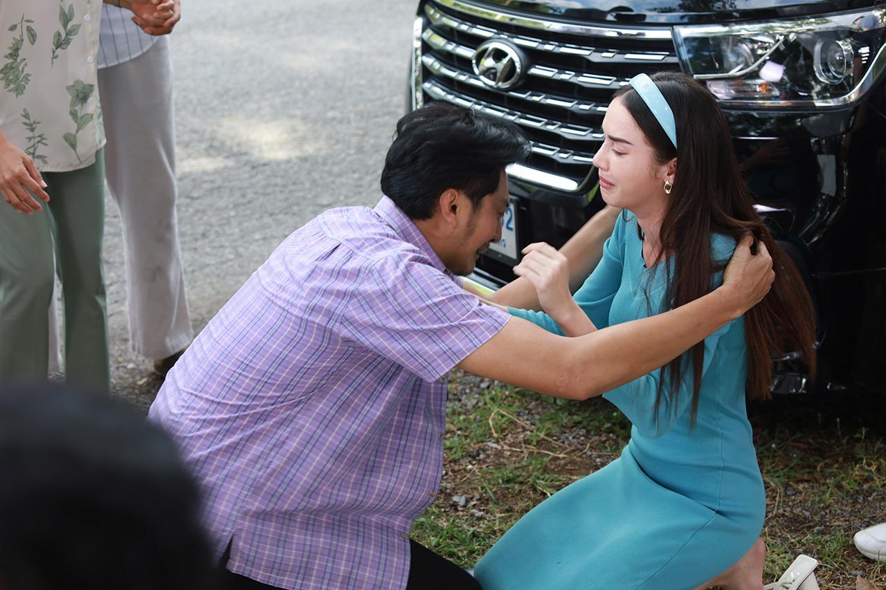 หลังจากซ้อมคิวเรียบร้อยแล้ว จุ๊บได้เข้าไปหาสกายแล้วขอโทษเอาไว้ล่วงหน้าก่อน เพราะในฉากจะต้องมีการผลักการดึงกัน สกายบอกว่าเต็มที่ได้เลย อารมณ์จะได้มาเต็มๆ ค่ะ ทั้งสองคนต่างก็เข้ามุมทำอารมณ์ หลังจากที่ทุกอย่างพร้อม จุ๊บขับรถด้วยความเร็วเข้ามาตัดหน้ารถของสกาย ทำให้ต้องเบรกกะทันหัน จุ๊บไม่รีรอกระโดดลงจากรถแล้วเข้ามาลากตัวสกาย แล้วบอกว่าไม่ต้องเอาไตไปให้พี่สุ เดี๋ยวเขาจะเป็นคนเสียสละเอง สกายอายุยังน้อย ยังมีอนาคตอีกไกล สกายไม่เห็นด้วยเลยเปิดศึกปะทะฝีปากกับจุ๊บ เอาข้ออ้างต่างๆ มางัดกับจุ๊บ จนจุ๊บเกือบจะจนมุมเลยต้องออกหมัดเด็ด โวยวายใส่สกายพร้อมกับกระชากแล้วดันตัวสกายขึ้นรถ บอกให้กลับไป สกายฝืนตัวแล้วรวบรวมแรงที่มีผลักจุ๊บออก โดยมีบิ๊กเอ็มคอยประคองหลังสกายไว้ สกายปล่อยโฮแล้วก็ทรุดตัวลงนั่งคุกเข่ากับพื้น แล้วค่อยๆ ดึงมือของจุ๊บมากุมเอาไว้แล้วซบหน้าร้องไห้ พูดอ้อนวอนจุ๊บทั้งน้ำตาว่าขอให้เธอเป็นคนให้ไตพี่สุ ทำเอาจุ๊บมือสั่น มือสั่น กลั้นน้ำตาเอาไว้ไม่อยู่ ปล่อยโฮออกมาไม่แพ้กับสกาย