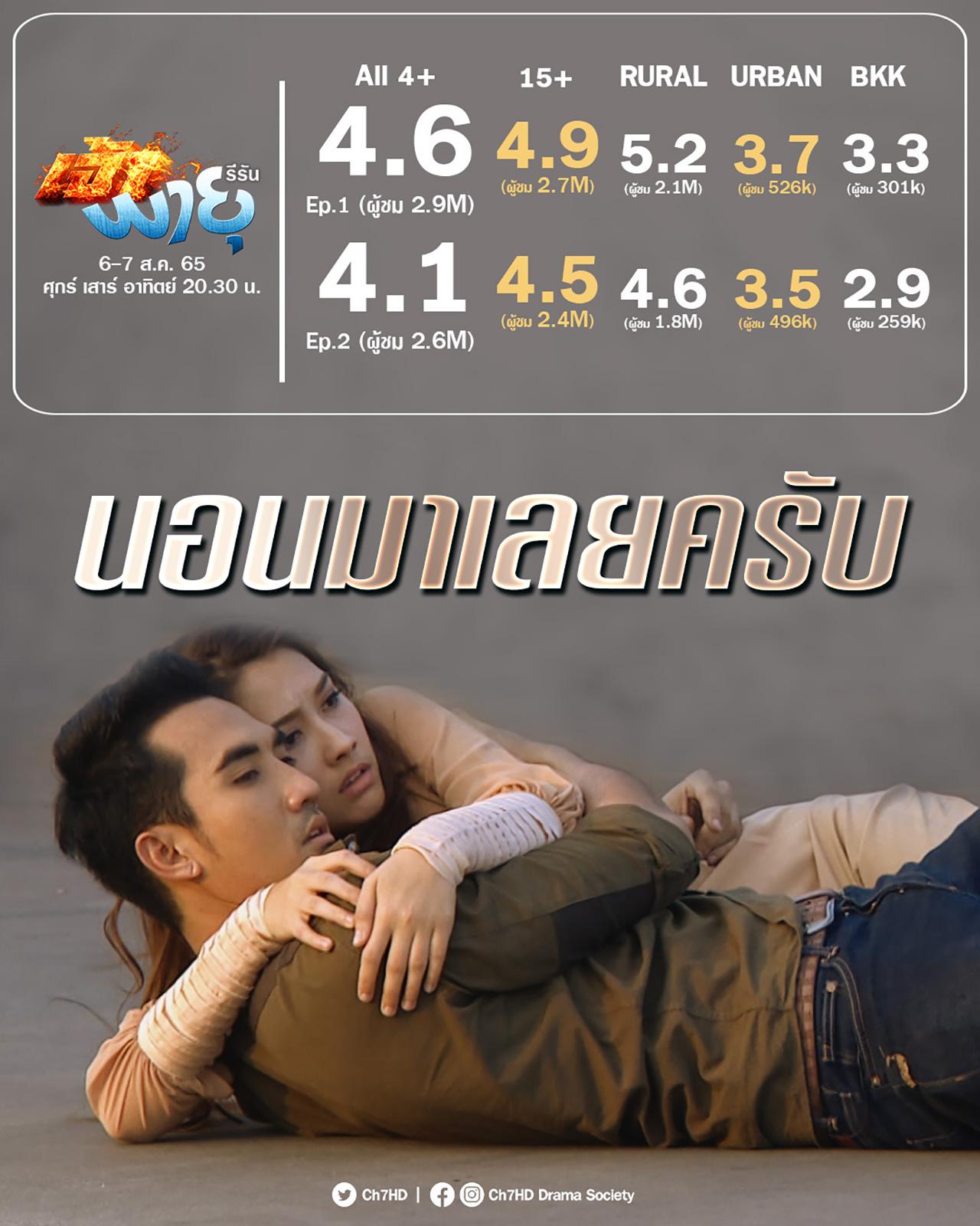 ปังไม่ไหวจ้า สำหรับละคร “เจ้าพายุ” ทางช่อง 7HD ที่กลับมารีรันสร้างความสุขอีกครั้ง ซึ่งก็ไม่ทำให้ผิดหวัง เพราะแค่เปิดตัวตอนแรก ก็ฟาดเรตติ้งวิ่งไปถึง 4.6 (ข้อมูลวันที่ 6 สิงหาคม 2565) ทำเอาพระเอกหนุ่ม บิ๊กเอ็ม กฤตฤทธิ์ บุตรพรม ยิ้มแก้มปริเลยทีเดียว