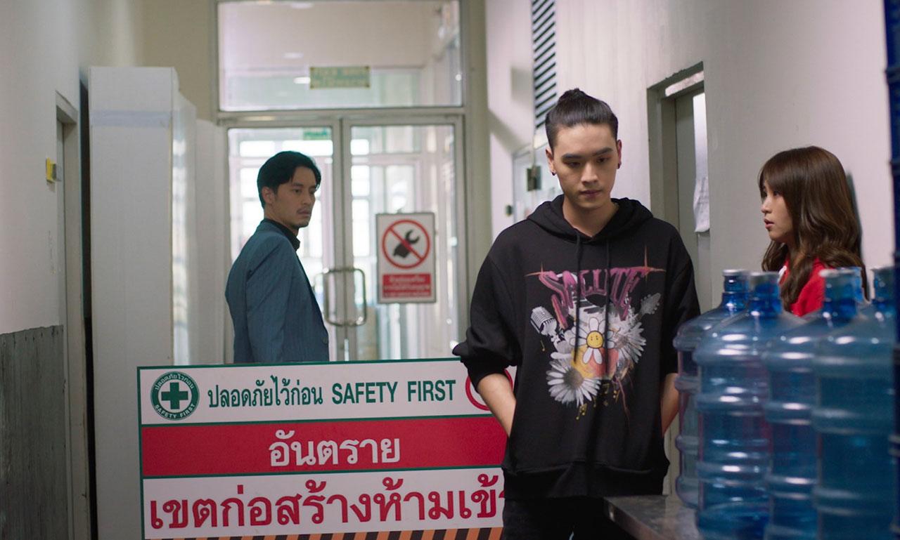 ก่อนถ่ายทำทั้งทะเลกับนาราก็ซักซ้อมกันพักใหญ่ ซ้อมไปเขินไป เพื่อให้คุ้นชินกับซีนเลิฟซีนฉากนี้ต่างคนต่างนัดแนะซ้อมจูบหลอกกันว่าจะจูบกันจังหวะไหนเพื่อให้ได้ปากประกบกันพอดี หลบซ้ายหลบขวาหามุมกล้องที่สวยงามสมจริง จนแม่นคิวและคุ้นชินกันดีแล้วก็ตกลงกันว่าจูบจริงไปเลยปล่อยตามฟีลลิ่ง พอผู้กำกับได้สัญญาณความพร้อมจากนักแสดงก็เริ่มถ่ายจริง ทะเล วิ่งตามไปขอร้องให้ นารา ใจเย็นๆ หยุดแผนการเสี่ยงๆ ทั้งคู่เถียงกันไปมา ด้วยความใจร้อนของนาราก็ไม่ฟังทะเล ดื้อดึงจะบุกเข้าไปห้องลับในการตามหาหลักฐานมาพิสูจน์ความจริงด้วยตัวเองให้ได้