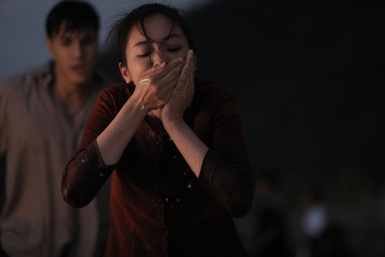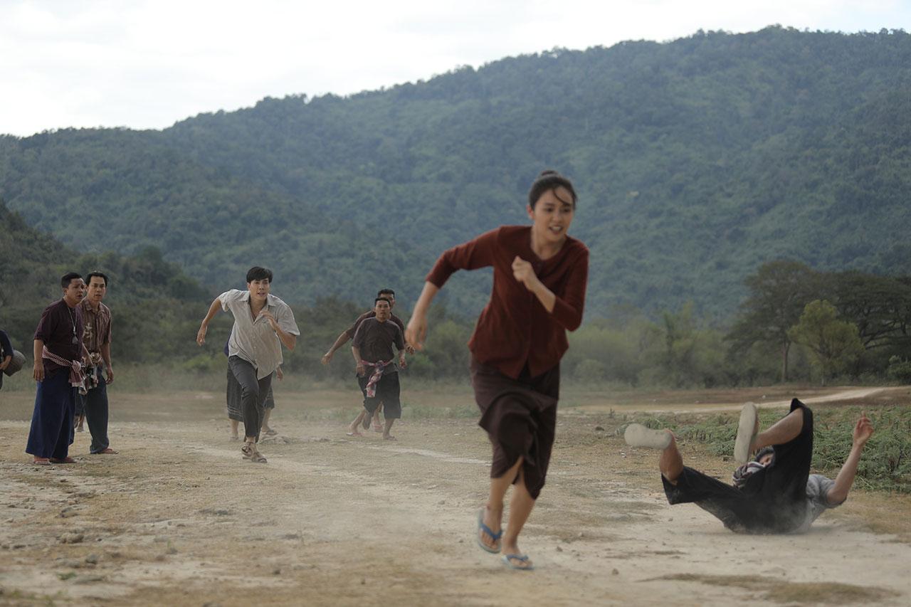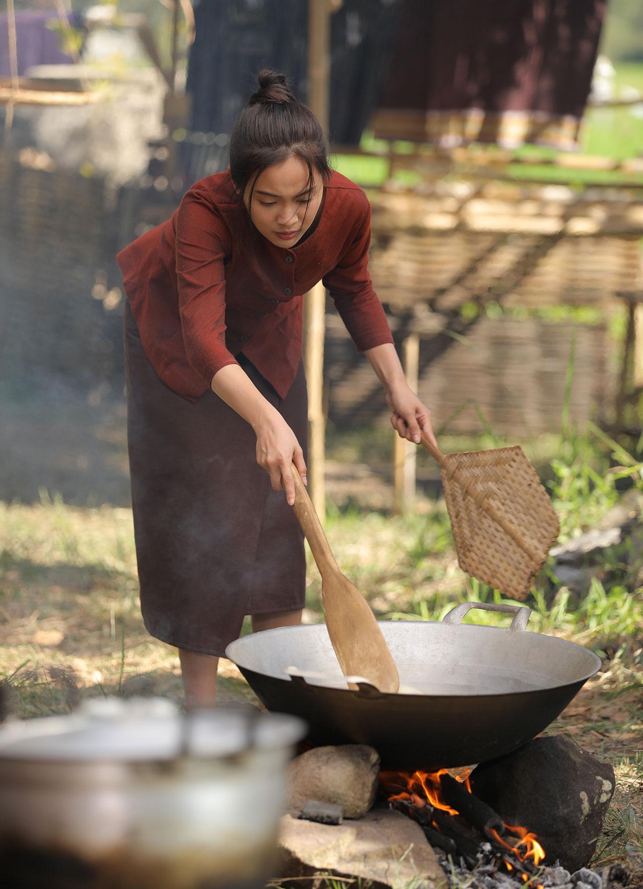 เริ่มจากแกะเปลือกไข่นกกระจอกเทศเอาไข่มากินอย่างเอร็ดอร่อย ตามที่ผู้กำกับบรีฟเอาไว้เลย พอสิ้นเสียงคัตทีมงานก็รีบวิ่งเอาน้ำดื่มเข้าไปให้สาวอุ้มดื่มล้างคออย่างไว แต่กลับกลายเป็นว่าพอถ่ายทำฉากนี้เสร็จ สาวอุ้มกลับบอกทางทีมงานว่า “ถ้าในฉากมีแจ่วบองให้หนูสักหน่อย หนูว่าฉากนี้ อิ่มอร่อยเลยนะคะ” แต่ยังไม่หมดเท่านั้น เพราะหลังจากที่กินไข่นกกระจอกเทศหมดแล้ว อุ้มจะต้องวิ่งลงน้ำโขงเพื่อไปดื่มน้ำดับร้อน เรียกว่ากินไข่ยังไม่ทันย่อยก็ต้องวิ่งลงน้ำต่อเสียแล้ว และงานนี้ก็ไม่ได้วิ่งเพียงคนเดียว เพราะมีชาวบ้านในเรื่องวิ่งตามกันมาเพื่อจับตัวอุ้มเอาไว้ รวมถึงพระเอกไม้-วฤธ ที่อยู่ในฉากนี้ด้วยที่ต้องเป็นคนกระโดดลงน้ำไปช่วยอุ้มขึ้นมาให้ได้