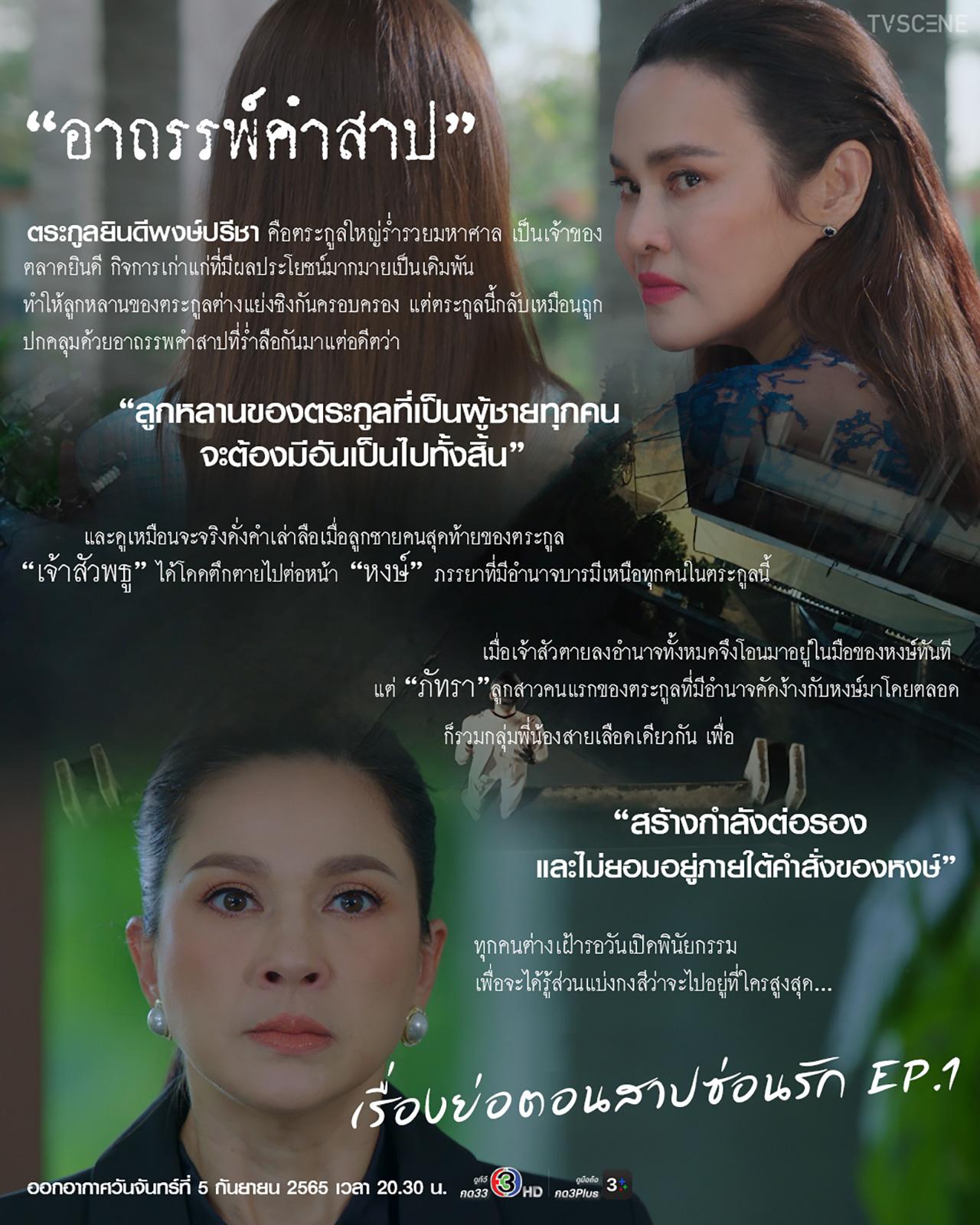 ติดตามฉากนี้ได้ใน “สาปซ่อนรัก” ทุกวันจันทร์-อังคาร เวลา 20.30 น. ออกอากาศตอนแรกวันจันทร์ที่ 5 กันยายนนี้ ดูทีวีกด 33 ดูมือถือกด 3Plus