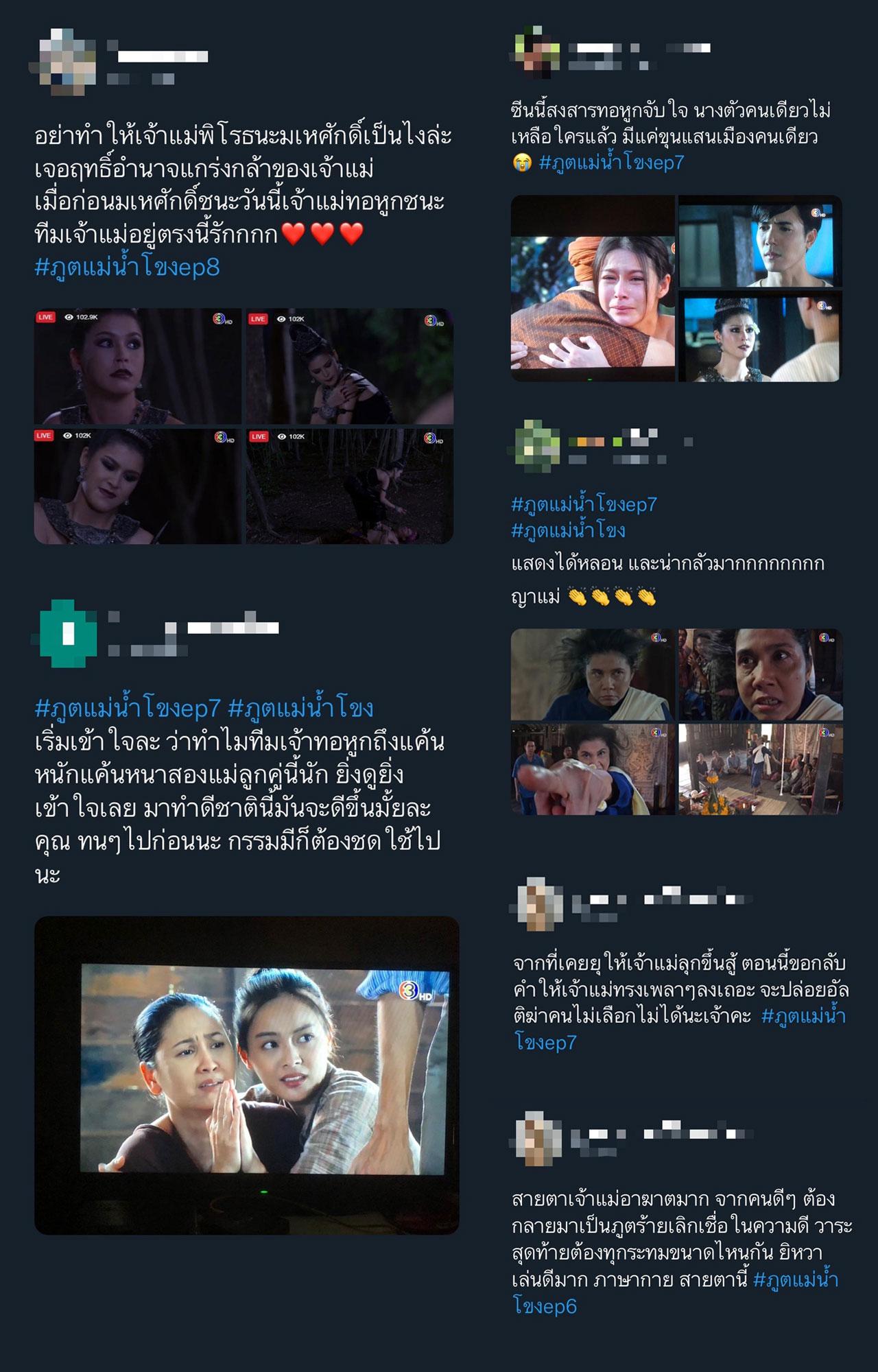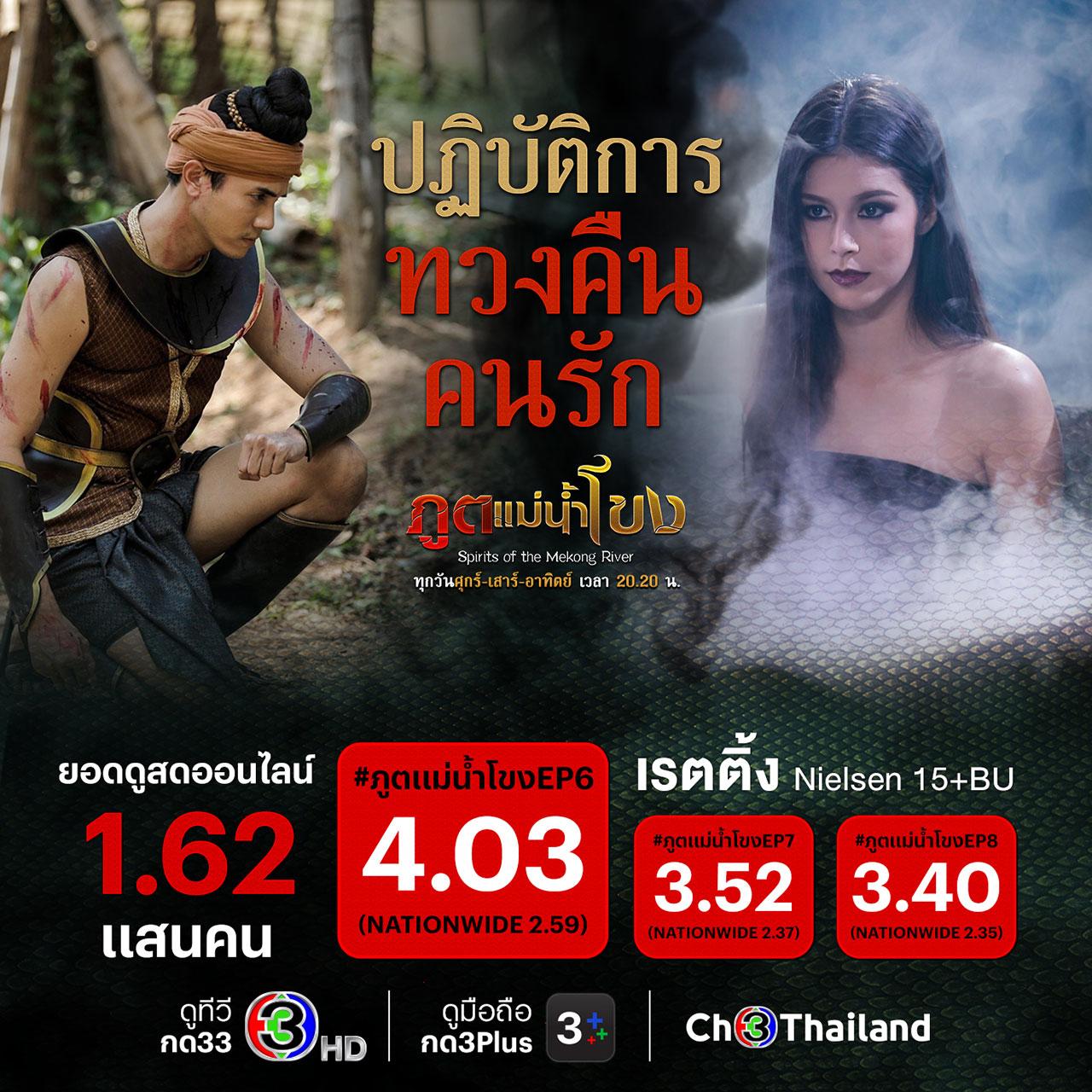 ส่วน “แชมป์ ชนาธิป” ถึงในเรื่องจะกลายเป็นบริวารเจ้าแม่ทอหูกครึ่งคนครึ่งปอบ ออกอาละวาดกินของดิบไปทั่ว แต่แฟนๆ ก็ยังกรี๊ดในฝีมือการแสดงและหุ่นอันแซ่บหลายของเขา ด้วยความสนุกเหล่านี้ ส่งผลให้ #ภูตแม่น้ำโขงep6 และ #ภูตแม่น้ำโขงep7 ติดเทรนด์ทวิตเตอร์ไทยแลนด์
