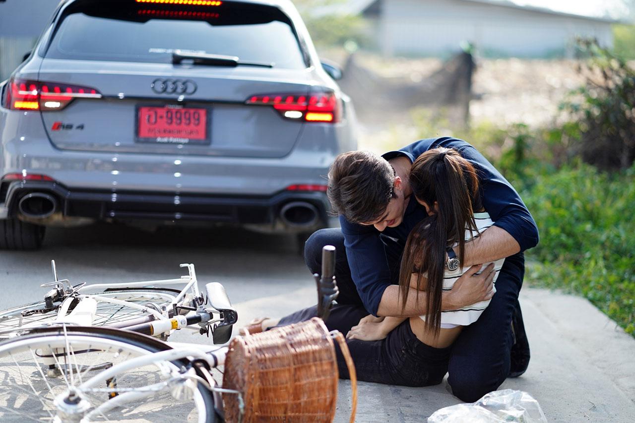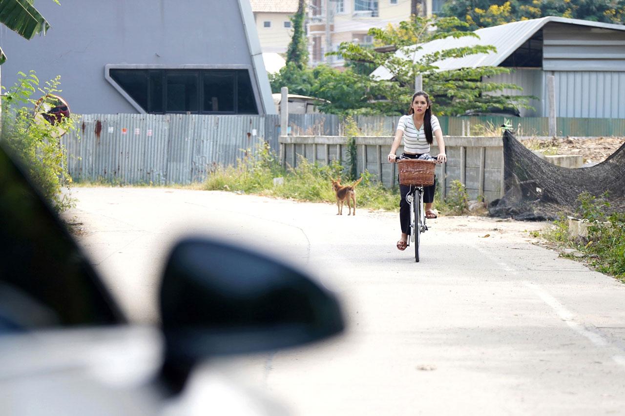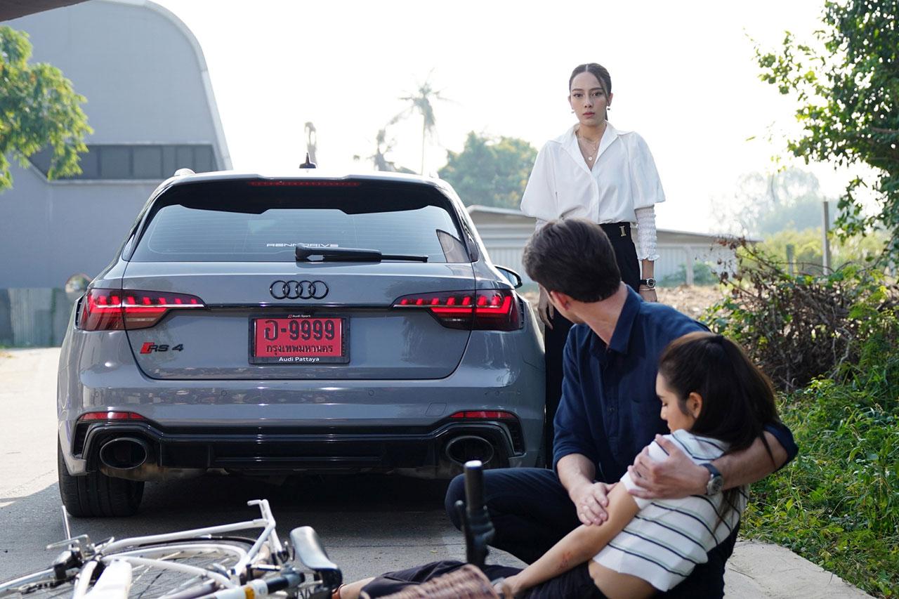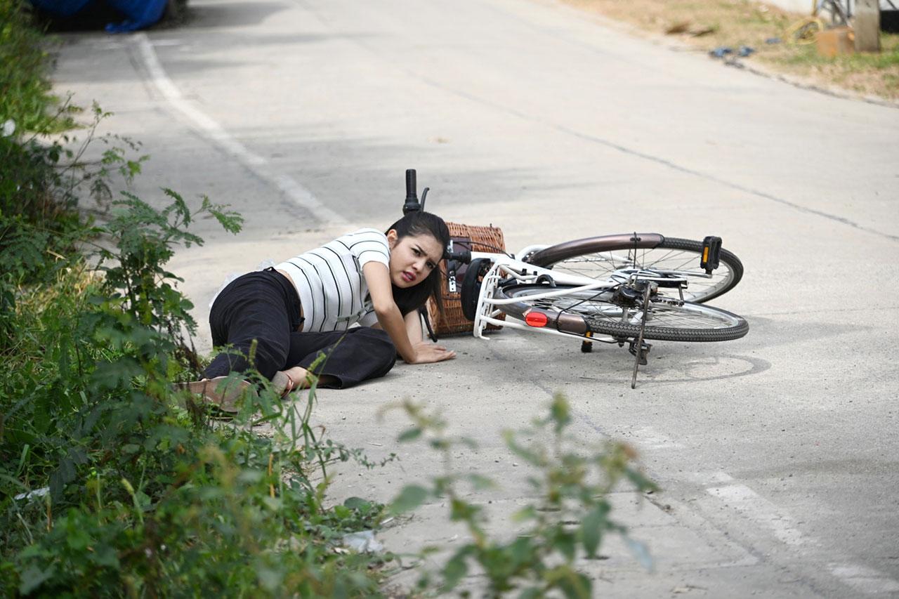 ซึ่งฉากระทึกฉากนี้เปรี้ยวและปูเป้ต้องซักซ้อมกันเป็นอย่างดี เพราะเปรี้ยวต้องขับรถเฉี่ยวปูเป้ที่รับบทวิมาลาและกำลังตั้งท้อง เปรี้ยวขับรถมาเจอปูเป้ขี่จักรยานอยู่ริมทางโดยบังเอิญ ด้วยความแค้นจึงตัดสินใจขับรถพุ่งชน จนปูเป้เสียหลักล้มลงข้างทาง คนไปทางจักรยานไปทาง แต่เปรี้ยวก็ยังไม่หยุด ถอยรถมาทับซ้ำอีก! แต่งานนี้ไม่รู้กรรมติดจรวด (อรปรียา) หรือยังไง?