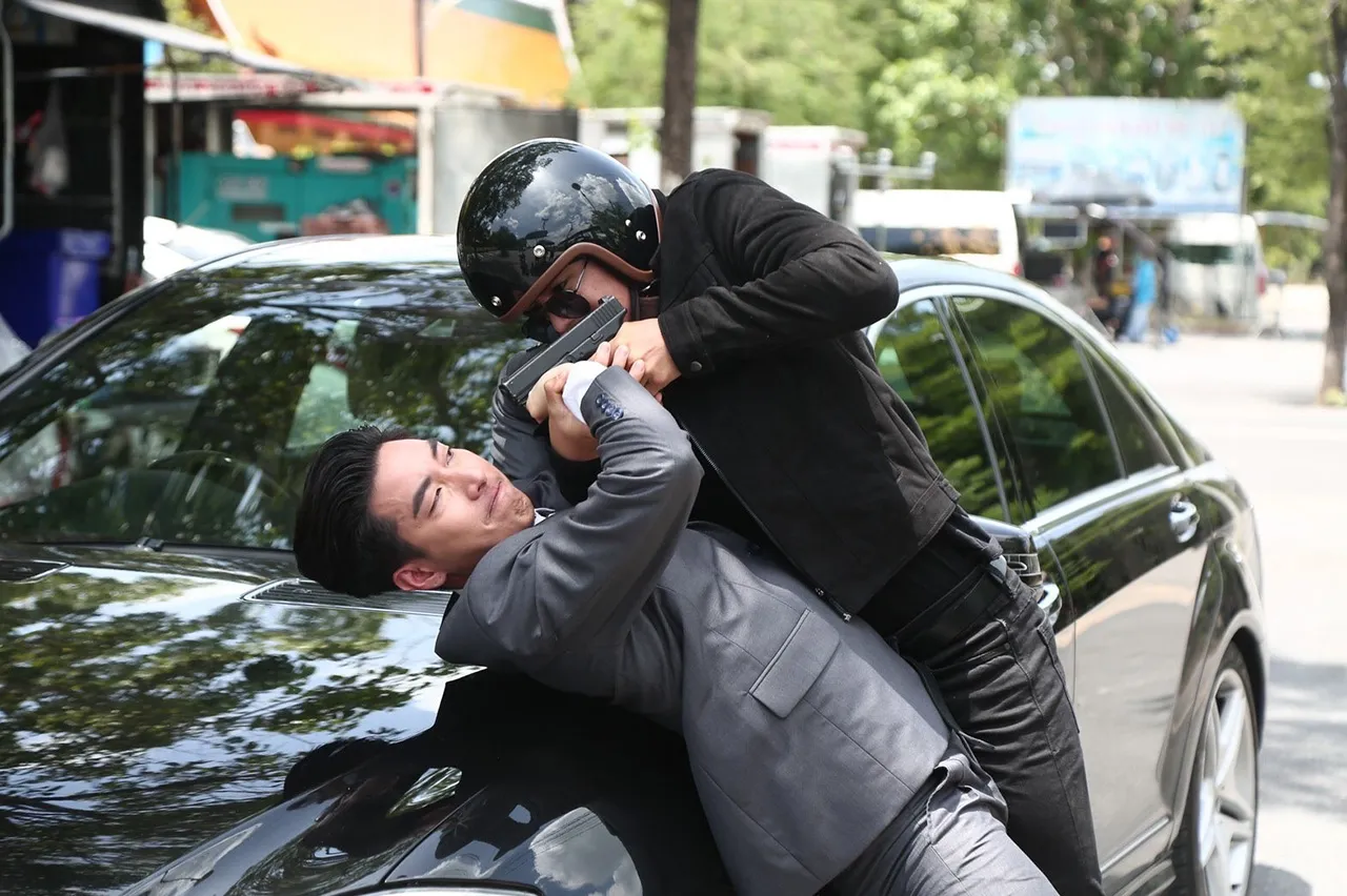 เริ่มถ่ายจริง โตโน่เห็นคนร้ายกำลังจะจัดการอาไพโรจน์ ก็ชิงจังหวะบุกใส่ก่อน โตโน่สาวหมัดตุ้บตั้บใส่ไปหลายดอก แถมตีเข่าใส่คนร้าย หวังให้จุก แต่ก็พลาดท่าโดนคนร้ายเอาคืน ใช้ปืนจ่อใส่โตโน่ หวังเก็บให้พ้นทาง แต่งานนี้โตโน่ยังไหวตัวทัน คว้าปืนได้ ทั้งคู่ยื้อยุดกันอยู่พักใหญ่ อาไพโรจน์เห็นท่าไม่ดีก็เข้ามาช่วยทุบคนร้ายจากด้านหลัง โตโน่ฉวยจังหวะนี้รีบพาอาไพโรจน์หนี แต่แล้วทั้งคู่ก็เจอทางตัน เมื่อคนร้ายตามมาเล่นงานระยะประชิด งานนี้ โตโน่ และอาไพโรจน์ จะรอดจากเงื้อมมือคนร้ายได้หรือไม่ ติดตามฉากนี้ได้วันจันทร์ที่ 12 กันยายนนี้ เวลา 20.20 น. ทางช่องวัน31