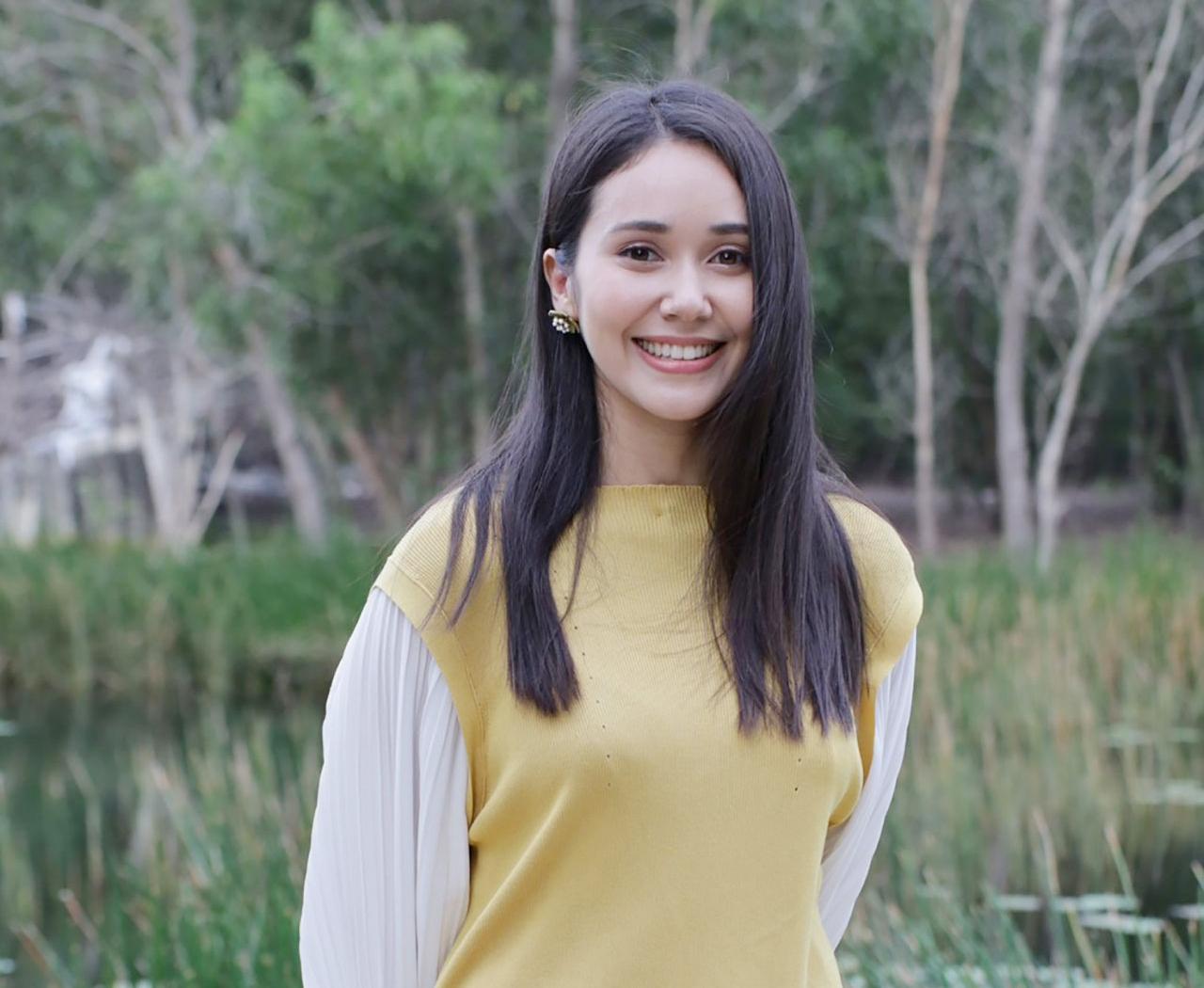 ซึ่งในเรื่อง จาด้าจะคู่กับ ฟีฟ่า (เปรมอนันต์ ศรีพานิช) ซึ่งมารับบท เก่ง นอกจอน้องฟีฟ่าน้องเป็นคนเฟรนด์ลี่ที่ตั้งใจทำงานดีเลย ถึงเขามีความเป็นเด็ก แล้วก็มีความดื้อ (หัวเราะ) ความซน มีความตลก ทำงานด้วยสนุกดีค่ะ ส่วนเรื่องราวความสัมพันธ์ของคู่เราในเรื่อง จุดเริ่มต้นมาจากความสงสาร ที่เขาเข้ามาตามหาน้องสาว คือ หล้า (แอนน่า กลึคส์) ที่กรุงเทพฯ เราเจอเขาก็ดึงเขามาทำงานด้วยกัน แต่ไปๆ มาๆ เราก็ปลื้มเขา เพราะเขาขยันทำงานและติดดิน ซึ่งเราไม่เคยเจอคนแบบนี้ในเมืองที่วุ่นวาย พอเรามาเจอเขาที่ใสซื่อ เราก็ชอบเขา ก็แสดงออกให้เขารู้ แต่เขาก็ไม่ได้ชอบเรา และก็พยายามวิ่งหนี เราก็เลยเจ็บปวด แต่ก็ยังทำงานด้วยกันต่อไปได้ ก็คือแอบรักเขาข้างเดียวนั่นเอง ซึ่งคนดูจะรู้ว่าเก่งก็มีความรู้สึกดีๆ ให้แอลลี่เหมือนกัน แต่เขาจะเจียมตัว รู้สึกว่าตัวเองไม่คู่ควร ก็อยากให้ทุกคนมาตามลุ้นกันว่า จะเกิดเหตุการณ์อะไรที่ทำให้ทั้ง เก่ง และ แอลลี่ รู้ใจตัวเองสักที จาด้าขอฝากละครสาวน้อยร้อยไมค์ด้วยนะคะ มันมีความสนุก มีเรื่องราวให้ติดตามได้เรื่อยๆ เป็นละครที่ทุกคนในครอบครัวนั่งดูไปพร้อมกันได้เลยค่ะ”