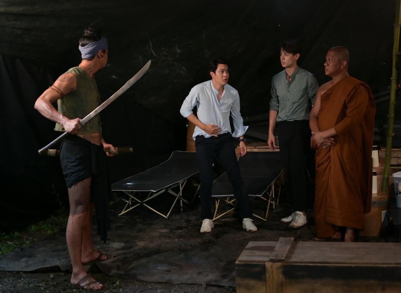 ยัง..ยังไม่หยุด ไม่รู้ว่า ผีเมือง (น้ำ-รพีภัทร) ไปเอาเรี่ยวแรงมาจากไหน ยังจับ แดนธรรม (แบงค์-อาทิตย์) มัดเตรียมบั่นคอหน้าป้อมอีก ฉากนี้ยกนิ้วให้ 2 หนุ่ม อึดตัวพ่อ ถ่ายกันจนตะวันตกดินกว่าจะได้ภาพสวยถูกใจ