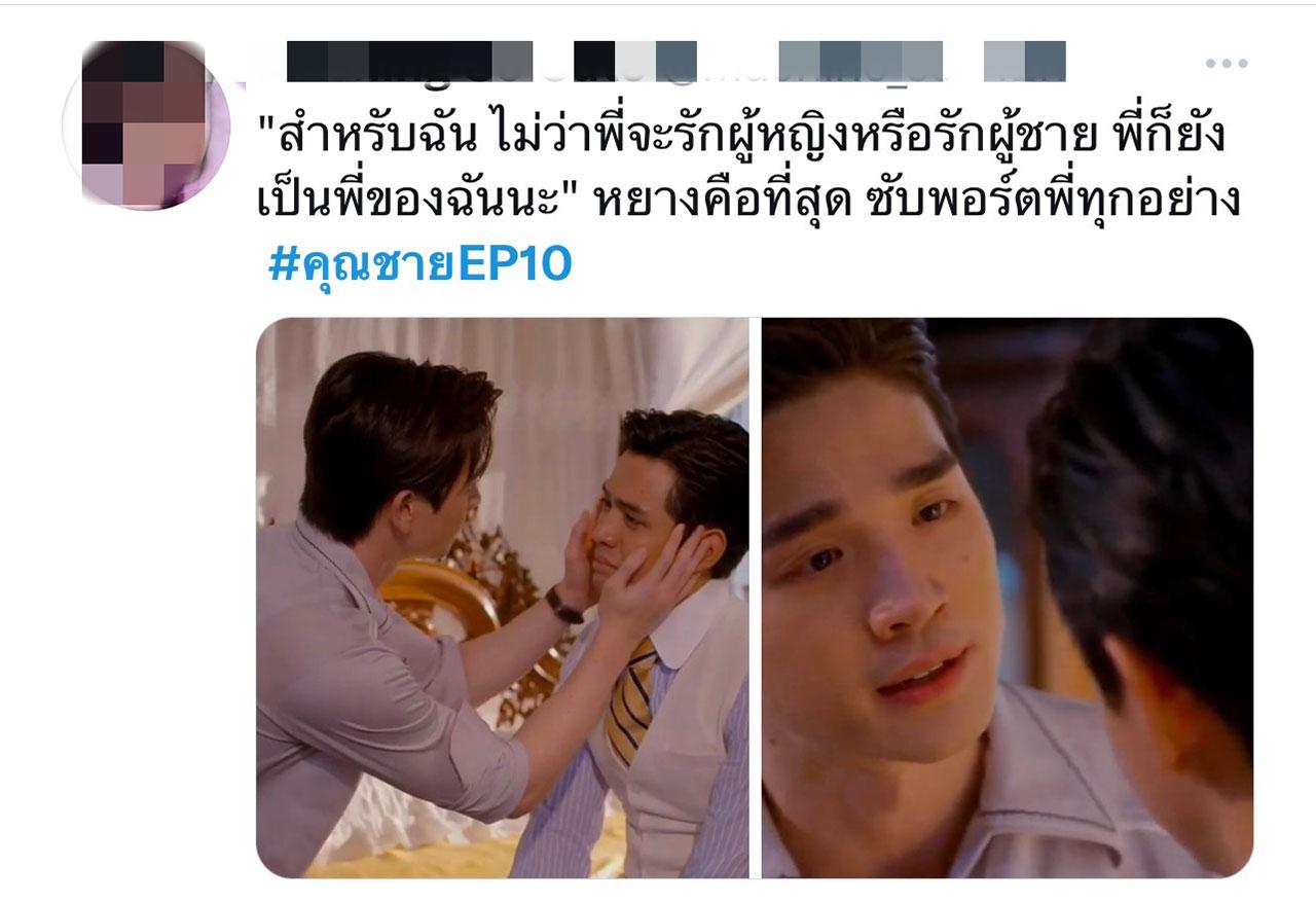 พูดน้อย แต่ฮาหนัก จนกลายเป็นไวรัลสุดดราม่า แสนฮา น้ำตาเล็ดกันไปแล้ว สำหรับ อีพี 10 ในละคร “คุณชาย” ทาง ช่องวัน 31 ซึ่งหนุ่ม “ตงตง-กฤษกร กนกธร” ในบท “หยาง” น้องชายต่างแม่ที่แสนดีของ “พี่เทียน” ซึ่งรับบทโดย พระเอกรุ่นพี่ “ฟิล์ม-ธนภัทร กาวิละ” ต้องแสดงความรัก ความเข้าใจในตัวตนที่แท้จริงของ “เทียน” ที่ยอมเปิดอก พูดความทุกข์ในใจที่เก็บมานาน ว่ามีความรักแบบชายรักชาย จังหวะซึ้ง อบอุ่น คู่นี้เค้ากินกันไม่ลงจริงๆ เพราะสายตา ท่าทาง ละมุนเกินต้าน