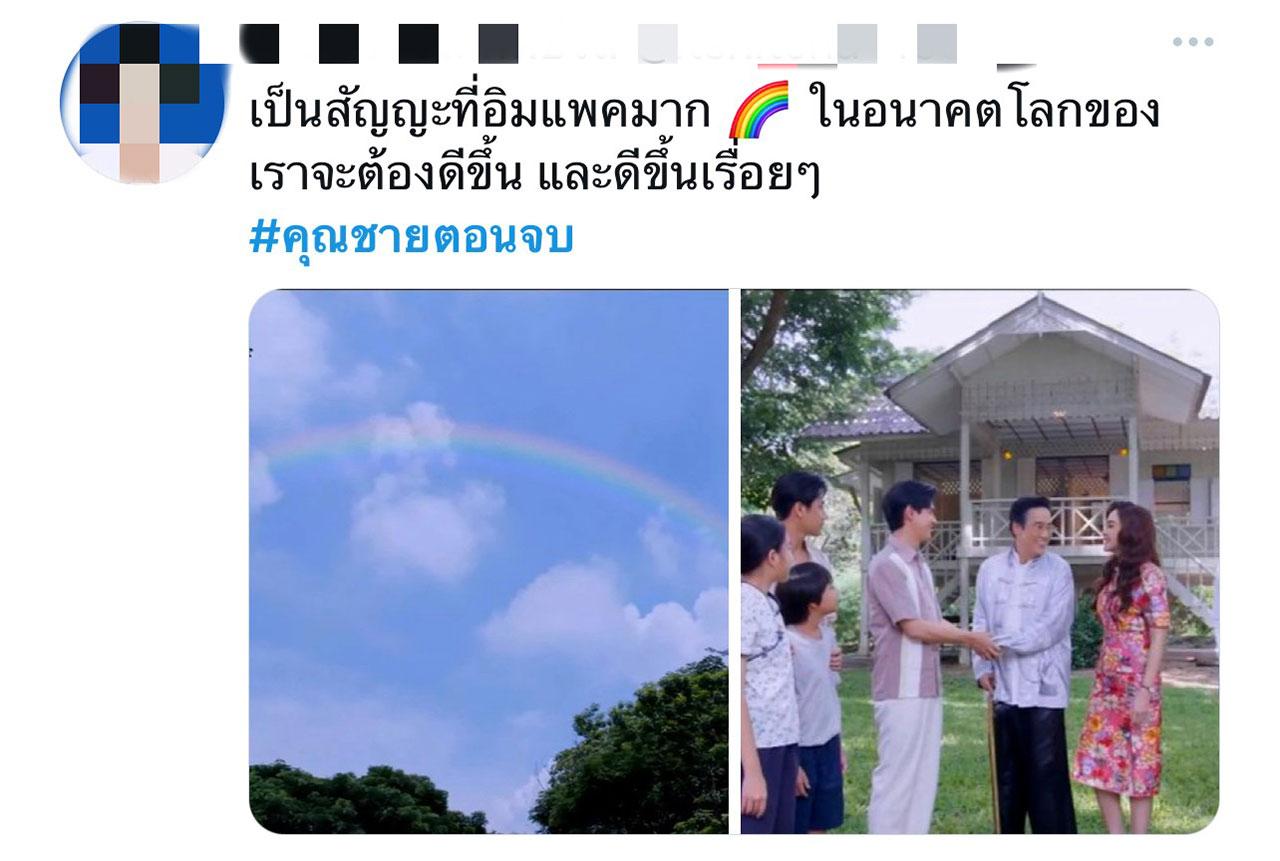 เมื่อความเศร้าจางลง ก็ถึงเวลา เบาหวาน น้ำตาลพุ่ง เพราะพบคนคลั่งรักหลายอัตรา ไม่ว่าจะเป็น คู่ หยาง (ตงตง กฤษกร) และ หญิงพิณ (มิลลี่ คามิลล่า) ที่เตรียมเป็นฝั่งเป็นฝา และที่หลายคนรอคอย และร่วมลุ้นไปกับความรักของ เทียน และ จิว (แจม รชตะ) ว่าจะได้ไปต่อ หรือพอแค่นี้ แต่สุดท้าย เมื่อจบด้วยความ happy ending แถมยังมีกลิ่นความตะมุตะมิ กับซีนโบ๊ะบ๊ะ ของเทียน ที่คิดไปไกล เมื่อจิวชวนกินของหวาน ซีนนี้ ถูกใจแฟนละครอย่างแรง แต่ที่ทำเอาเสียงชื่นชมหนาหู กับภาพสุดประทับใจที่ทุกคนที่ยืนมองสายรุ้งบนท้องฟ้า เรียกว่า ฟ้าหลังฝนย่อมงดงามเสมอ และสายรุ้ง ยังสื่อถึงความรักเท่าเทียมอีกด้วย