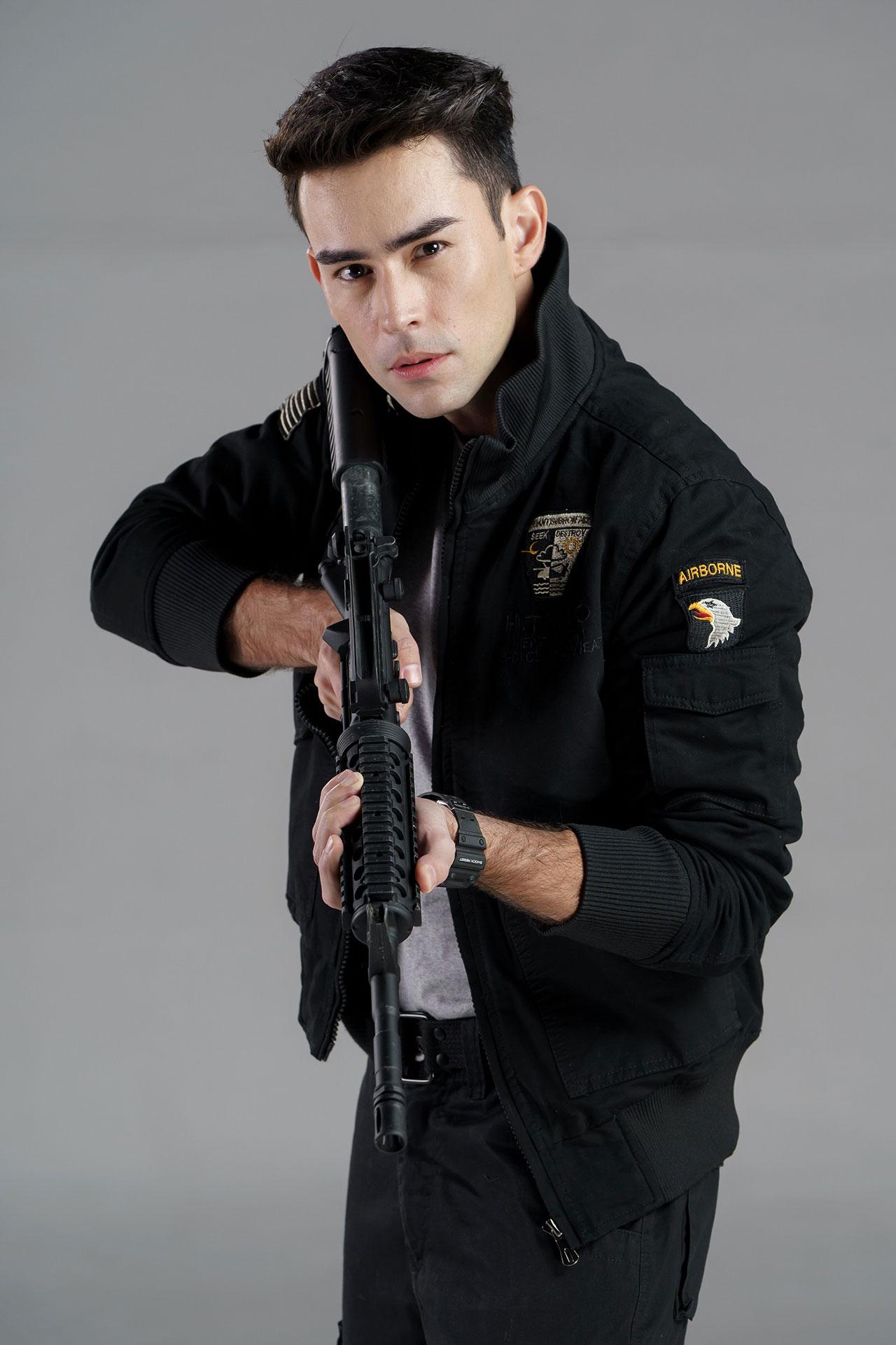 “ในเรื่องนี้ผมรับบท เอกราช เขาเป็นทหารหน่วยรบพิเศษที่ได้รับคำสั่งให้มาปฏิบัติภารกิจลับที่บ้านเกิดของตัวเอง เอาจริงๆ ความบู๊แอ็กชันแบบ 9 บีเวอร์ ฟิล์มส์ แน่นอนเรื่องความยิ่งใหญ่ ภาพมุมกล้องที่สวย ระเบิดปืนมาแบบชุดเต็มแล้ว ครั้งนี้เรื่องการต่อสู้ของผมจะเน้นนำศิลปะมวยไทยมาใช้ ซึ่งแม้ผมจะเล่นละครบู๊มาหลายเรื่องแต่เรื่องนี้ต้องไปเรียนศิลปะมวยไทยเพิ่มขึ้น ถือว่าเป็นเรื่องใหม่ในการบู๊ของผมเหมือนกัน แต่อย่างไรเรื่องนี้ใช่ว่าผมจะบู๊หนักอย่างเดียว ยังมีเรื่องความรักมีคู่เหมือนกัน ได้ร่วมงานกับน้องการ์ตูน (ณัฐฌา บุญปอง) ครั้งแรก น้องเป็นคนตั้งใจในการทำงานมาก เรียกว่าทุ่มเทมากๆ อยากให้ติดตามกันครับเรื่องนี้บู๊จัดเต็ม เรื่องสนุกครบทุกรสแน่นอน”