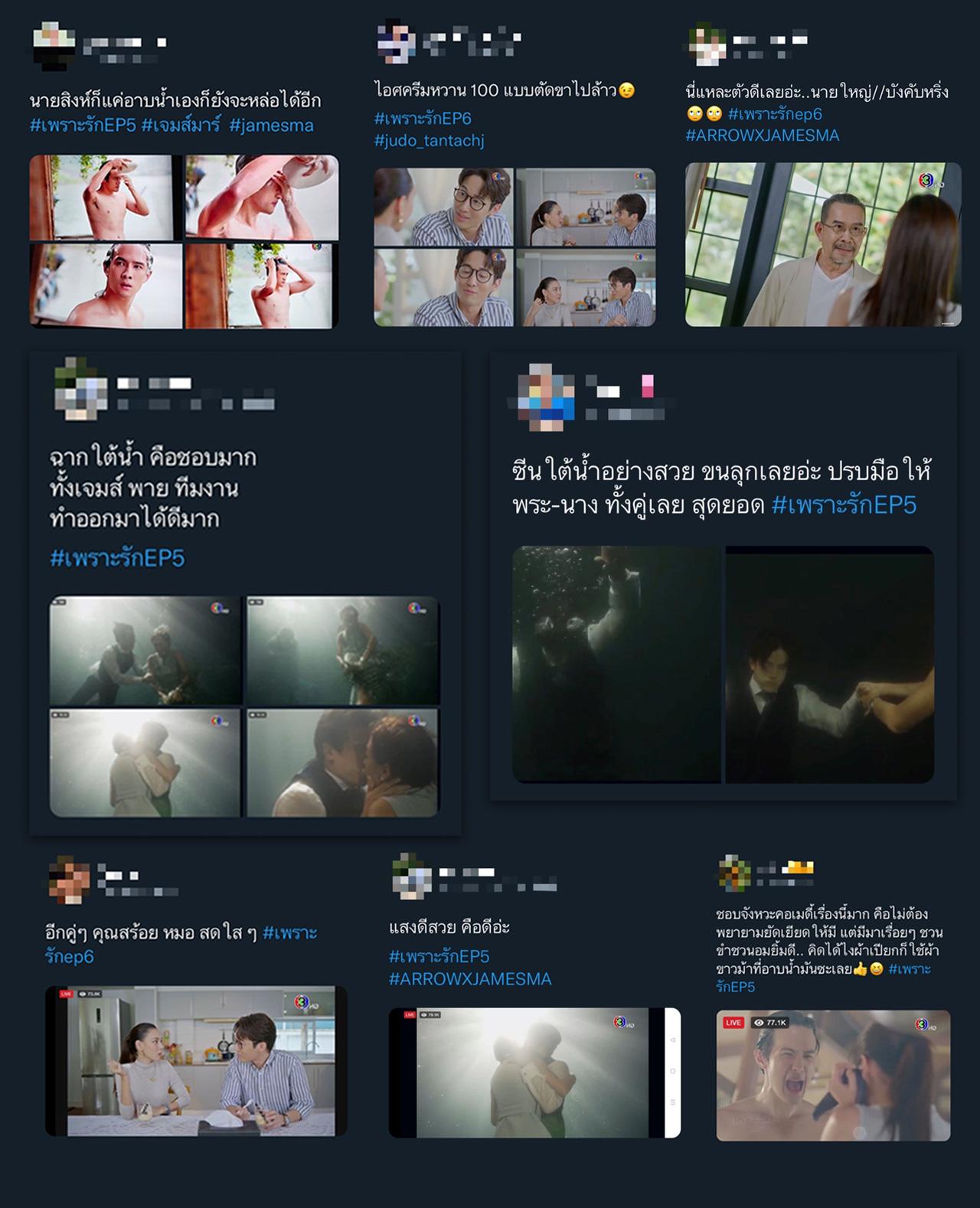 แต่ซีนที่ทำให้หลายคนอึ้งกับความสวยงามไปกว่านั้นคือซีนใต้น้ำที่ นายสิงห์ (เจมส์ มาร์) กระโดดไปช่วย หริ่ง (พาย รินรดา) ที่พลัดตกสะพาน เรียกได้ว่าเป็นซีนที่ทุกคนทั้งลุ้นและชื่นชมกับฉากใต้น้ำที่สวยงามสมจริงสุดๆ พร้อมยังได้รับความฟินจิ้นจนจะใจขาดดิ้นจากคู่ “เจมส์ มาร์-พาย” อีกด้วย และระหว่างที่คู่นายสิงห์หริ่งคว้าใจคนดูได้ คู่หมอวรวรรษกับสร้อยที่แสดงโดย “ยูโด ธรรม์ธัช” และ “ตูน พิมพ์ปวีณ์” ก็เริ่มทำคะแนนตีตื้นพาคนดูหลงไปกับเคมีน่ารักสดใสสุดละมุนละไมของคู่นี้