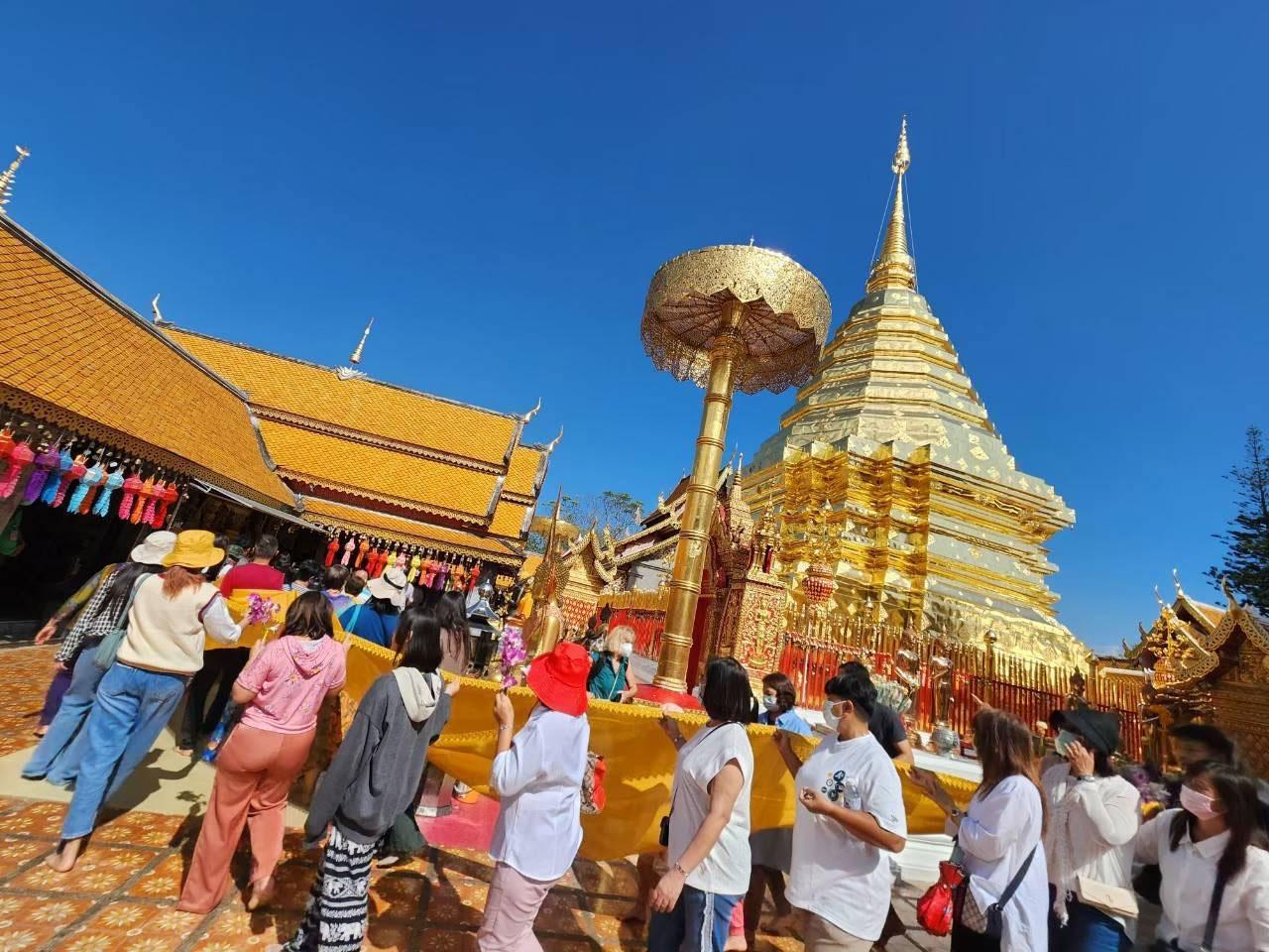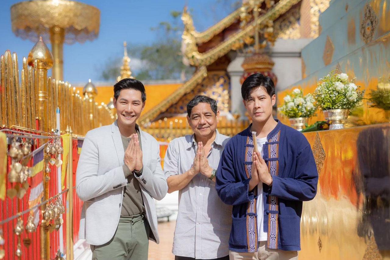หลังจากถ่ายทำฉาก พีพี และ เบน ไหว้ขอพรพระธาตุดอยสุเทพแล้ว ก็ถึงเวลามงคล กบ-ปภัสรา นำทีมกล่าวคำถวายผ้า และแห่ผ้ารอบพระธาตุ มีสองนักแสดงอย่าง แอมป์-พีรวัศ และน้องใหม่ แพม-สุชานุช เข้าร่วมขบวนด้วย จากนั้นก็ถึงเวลาห่มผ้าพระธาตุ ซึ่งจะต้องไปห่มด้านใน โดยมีข้อห้ามไม่ให้ผู้หญิงเข้า สามหนุ่มอย่าง เอ๋-กษมา ผู้กำกับฯ หนุ่มเบน และ หนุ่มแอมป์ ขออาสาเข้าไปห่มผ้าพระธาตุร่วมกับพระสงฆ์ด้านใน โดยมีสาวๆ เกาะขอบรั้วร่วมอนุโมทนาบุญในครั้งนี้ด้วย
