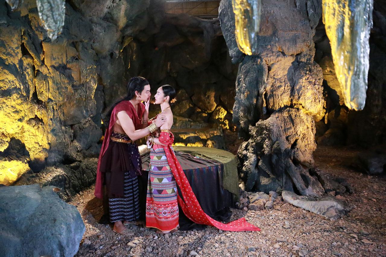 ฉากเปิดปมเรื่องราวต้นเหตุความแค้นนี้ เริ่มด้วยฉากความรักความใคร่ย้อนอดีตของนาว-บลิว-การ์ตูน ที่พัวพันกันด้วยความรัก และจบลงด้วยความแค้น ซึ่งฉากเหล่านี้ถ่ายทำในถ้ำทองของนางนาคี ซึ่งทีมงานเซตขึ้นใหม่ในสตูกันตนา ศาลายา ต้องบอกว่าทุ่มทุนสร้างกันเลยทีเดียว แถมถ่ายทำออกมายังสวยงามเสมือนจริง