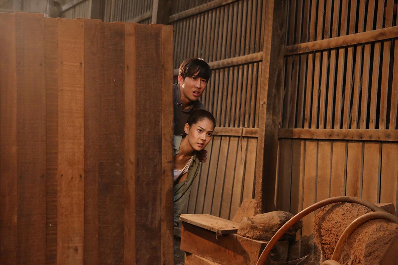 อภิชาติ(ยูโด-ธรรม์ธัช) กับ จักจั่น(ป๊อป-ธนัญญา) แอบดูดิเรก(จตุรวิทย์ คชน่วม) ที่กำลังใช้ค้อนตีตราประทับรับรองไม้ที่ลักลอบมาแบบผิดกฎหมายให้ถูกกฎหมาย จักจั่นทนไม่ไหว โมโหกับการกระทำของดิเรก เลยพุ่งออกไปจะจัดการ แต่ทั้งคู่ต้องชะงักเพราะพ่อเลี้ยงนำพวกลูกน้องมาล้อมไว้ จักจั่นไม่ยอม ทั้งคู่ช่วยกันต่อสู้ จักจั่นแย่งปืนมาได้แต่หันมาเจออภิชาติถูกจับคุกเข่าใช้ปืนจี้ไว้เลยต้องยอมทิ้งปืนลง ทั้งคู่จึงโดนจับมัดไว้ที่ท่อนซุง ที่อยู่บนล้อเลื่อนบนเครื่องตัดไม้