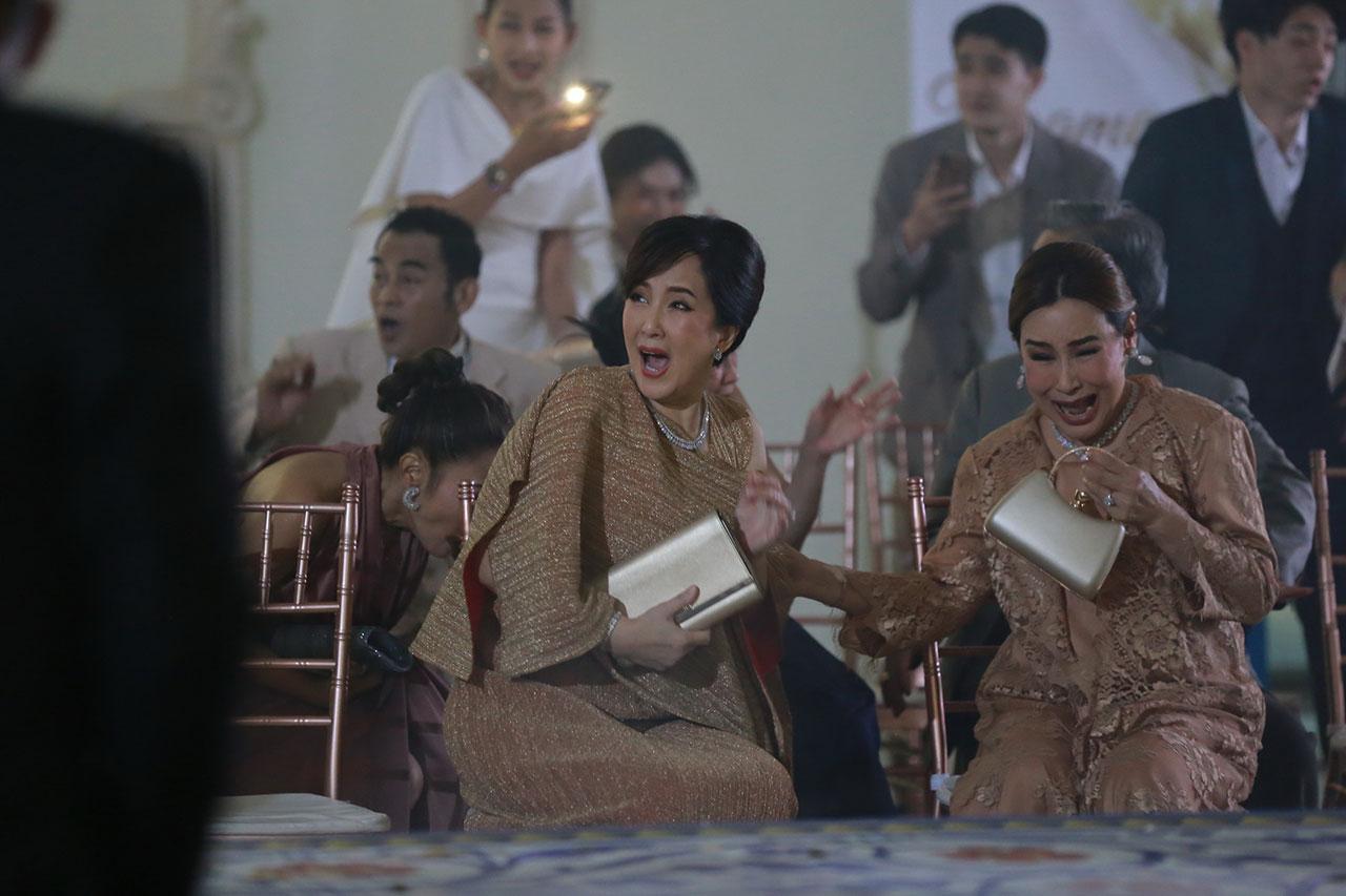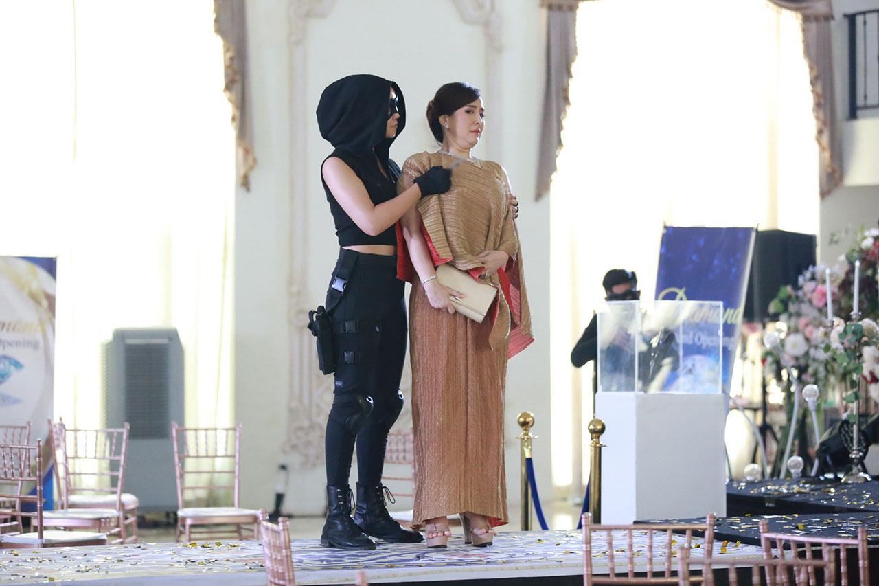 สินชัยก็มีแผนแก้แค้นดาวอยู่ในหัวจึงยอมให้ดาวเป็นคนใส่ เมื่อเริ่มงาน ดาวที่สวมมงกุฎเพชรเดินโชว์บนแคตวอล์กที่จัดงานอลังการ มีแขกร่วมงานมากมาย ระหว่างนั้นนางเสือก็บุกมาปล้นมงกุฎเพชรที่ดาวใส่ไป เมื่อดาวรู้ว่าเป็นนางเสือปลอม (แคท-ตฤณญา) ก็เกิดการปะทะกันขึ้น ทีมตำรวจคุ้มกันของฤทธิ์ล้อมจับนางเสือไว้ได้ แต่สมุนของนางเสือก็เข้ามาสมทบยิงผู้คนภายในงาน อภิชาติ (ยูโด-ธรรม์ธัช) และจักจั่นพยายามพูดให้ทุกคนใจเย็นตั้งสติ และบอกทุกคนว่าที่เห็นไม่ใช่นางเสือตัวจริง นางเสือจับดาวเป็นตัวประกันให้ใส่เสื้อกั๊กที่ติดตั้งระเบิดไว้เพื่อให้เจ้าสัวสินชัยมอบตัว