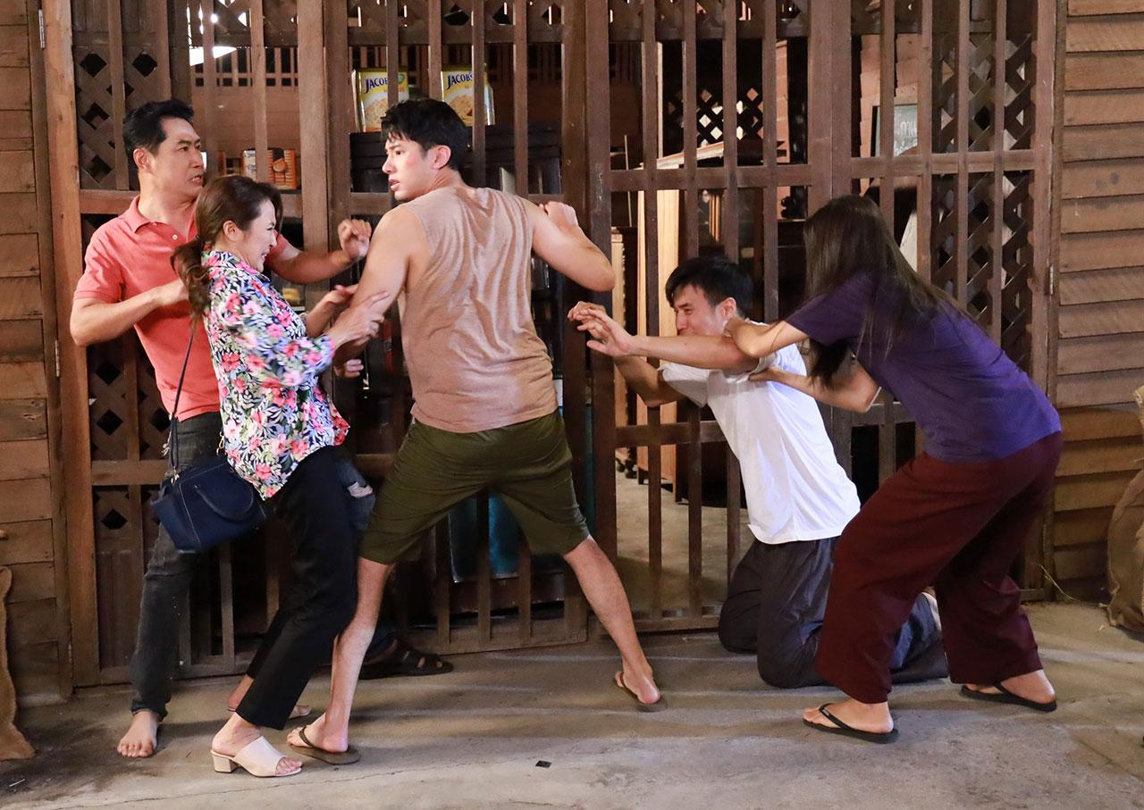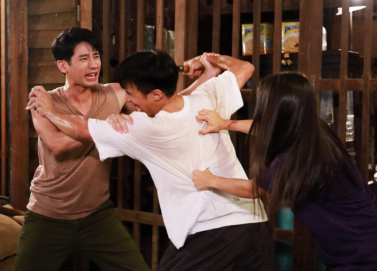 เนื่องจากมีนักแสดงร่วมฉากหลายคน ผู้กำกับ โจ้-ชัชวาลย์ เลยต้องบรีฟละเอียด ฉากนี้ทุกคนต้องเชือดเฉือนอารมณ์ขั้นสุด ถ้าพลาดหรือหลุดจะทำให้อารมณ์ไม่ต่อเนื่อง ตัวละครตั้งใจกันเต็มที่ทำสมาธิยกใหญ่ โดยเฉพาะ ดอม ที่ซีนนี้อารมณ์ต้องมาเต็มเพราะโดนกระทำทั้งร่างกายและจิตใจ เมียกำลังจะพาลูก 2 คน คือ คุ้มเกล้า (ด.ช.ไฟซัล นากิ๊บ) และ เขตรัฐ (แพน-นทีเทพ บุนนาค) หนีตามชู้ ดอมในบทเสนาะสามีแสนดีร้องไห้อ้อนวอนให้ภรรยาไม่ไป แต่ไม่เป็นผลระเบิดอารมณ์คลั่งรัก! อาละวาดขวางสุดตัว หวิดฆ่าชู้ ดีที่ปกฉัตรกับ เทียนแก้ว (จาด้า อินโตร์เร) ห้ามพ่อจนตัวเองถูกมีดในมือพ่อปาดแขนเลือดอาบ แชปที่รับบท “ปกฉัตร” ลูกชายที่แบกรับทุกเรื่องราวในครอบครัว ตอนแรกประหม่าเพราะใหม่สำหรับดราม่า แต่พอพี่ดอมจัดน้ำตามาให้ทุกคัท แชปก็สู้กลับไม่แพ้พ่อบังเกิดเกล้าในละคร งานนี้ จาด้า-ไฟซัล ลูกอีก 2 คน พากันร้องไห้ฟูมฟายตาม สิ้นเสียงคัท พี่ดอม ทัก แชป ว่า “ไหนบอกพี่ไม่ถนัดบทดราม่า แค่ซีนแรกก็โหมน้ำตาพาพี่อึ้งเลย”