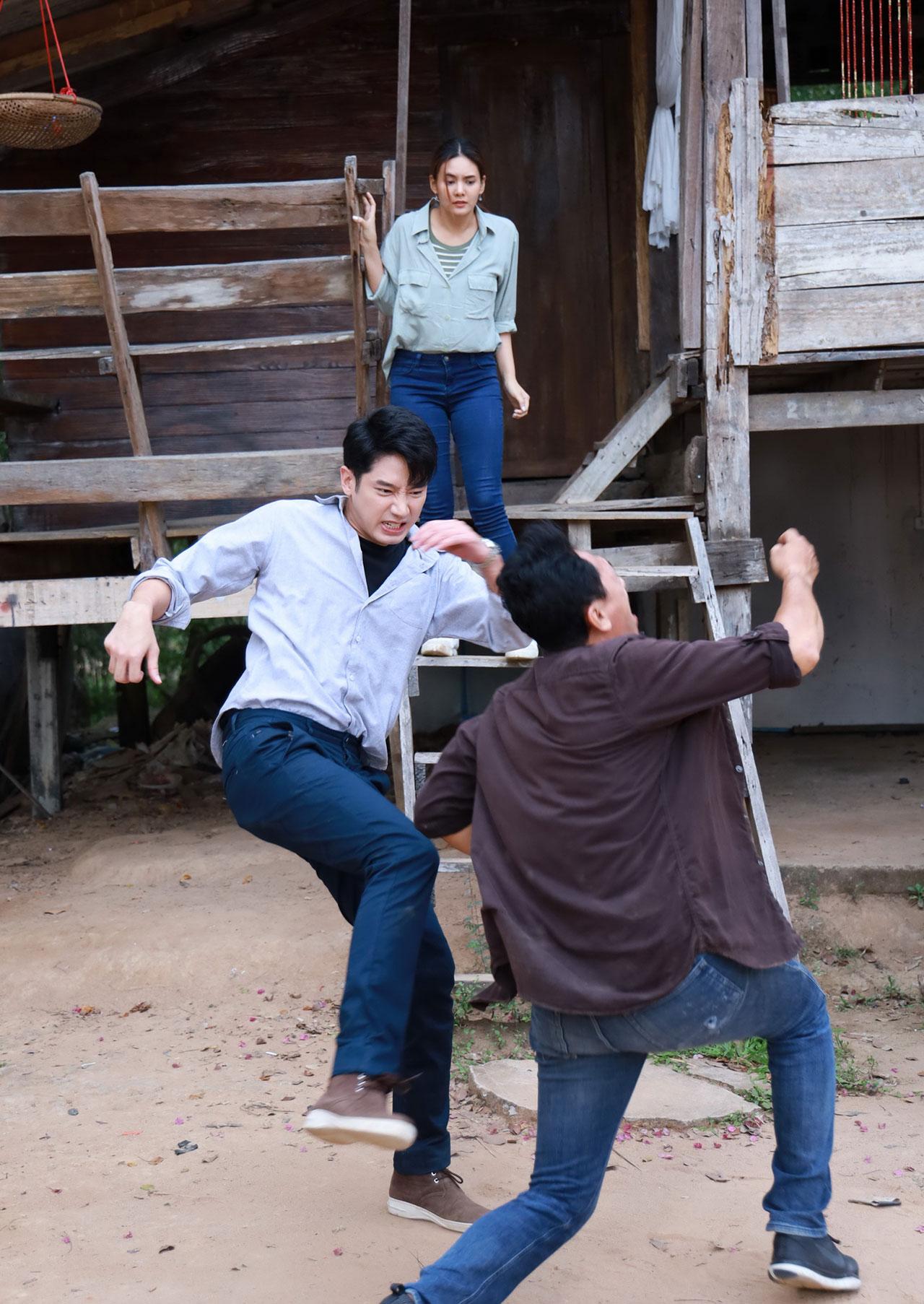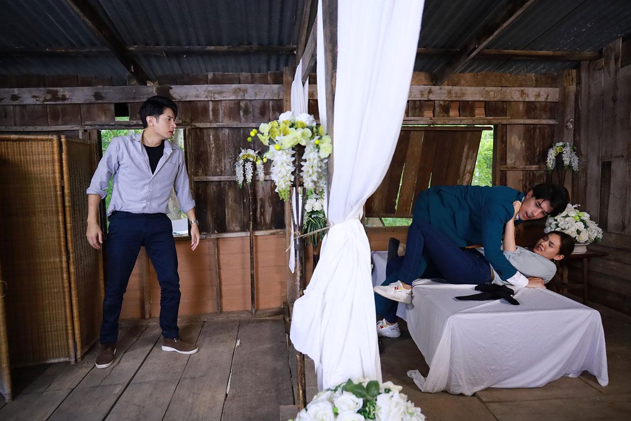 คิวนี้ ผู้กำกับโจ้-ชัชวาลย์ คล้องช้าง พาทัวร์ไปหลบร้อนริมลำธาร จ.สระบุรี เริ่มที่ มิ้นท์ ถูกโจรจับตัวปิดตาไม่ให้จำทางได้ นางเอกของเราแรงดี๊ดีดิ้นจนพี่นักแสดงร่วมเกือบเอาไม่อยู่ นึกแล้วก็ชักจะสงสาร เติร์ก ที่รับบท “ไตรทศ” ซึ่งเดี๋ยวต้องไล่ปล้ำมิ้นท์ในกระท่อม ใครยังไงไม่รู้แต่คุณหนูของเราไม่สะดวกแบบนี้