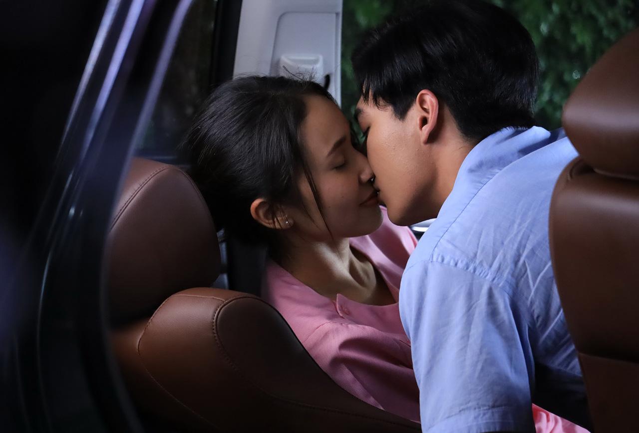 พอได้จังหวะโบ๊ะบ๊ะสบตาซึ้งตรึงใจกันไม่นาน พลังอาฆาตจาก กวาง ก็พุ่งปรี๊ด คว้าช่อดอกไม้มาฟาด จาด้า ไม่ยั้ง ทุกอย่างรวดเร็วปานสายฟ้าฟาด กวาง ง้างตบซ้ำส่ง จาด้า คว่ำลงกับพื้น ก่อน ทศ จะตั้งหลักคว้าตัว กวาง แยกออกมา แต่เสียงกรีดร้องเกรี้ยวกราดมีให้ขนลุกกันตลอดซีน กว่าจะคัตก็จัดเอาหอบกันทุกฝ่าย ทศ แซว “พลังหึงผู้หญิงนี่แรงเกินต้านจริงๆ” กวาง ยิ้มเขินก็คนเขาอินอะเนอะ อะๆ เบรกสงครามด้วยฉากสโลว์อินเลิฟบ้าง ถูกตบตีสะบักสะบอมจน ภู (ทศ) ต้องพา เทียนแก้ว (จาด้า) ไปพักใจที่ทะเล แหม..ฝนเจ้ากรรมก็ช่างเป็นใจ ตกหนักจนลงจากรถไม่ได้ ปรับความเข้าใจกันไปกันมา คำสารภาพรัก!! หลุดจากปากทั้งคู่จนได้ บอกรักกันนุ่มๆ จ้องตากันอย่างเข้าใจ แล้วก็ค่อยๆ โน้มตัวโน้มใจประทับรอยจูบ! ละมุนๆ หูย..ต่างก็ใหม่กับบทบาทเลิฟซีนแต่ ทศ-จาด้า ก็ทำเต็มความสามารถ บอกคำเดียว อยากหยุดเวลาไว้ที่ฉากนี้