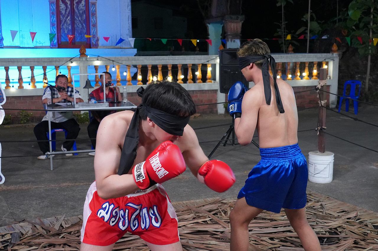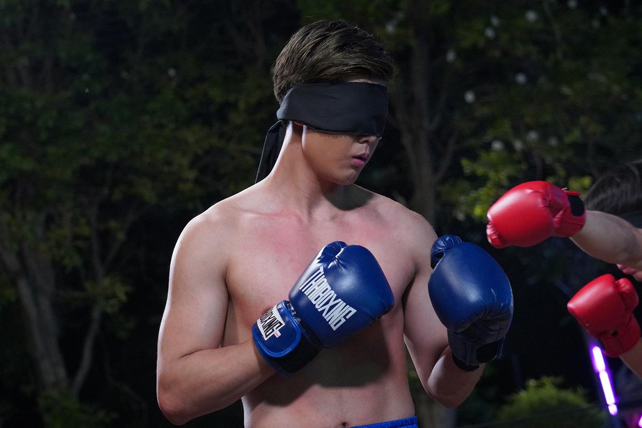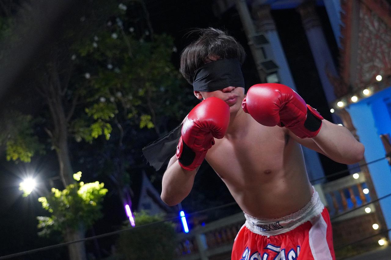 ฉากนี้เป็นฉากที่ สายฟ้า (ตะวัน) มือใหม่ในวงการมวยต้องลงแข่งขันชกเปิดสังเวียนกับ เปเล่ (ไกด์) ลูกศิษย์ค่ายมวยของ สาหัส (สามารถ พยัคฆ์อรุณ) ซึ่งกติกาชกคือต้องใช้ผ้าปิดตาให้สนิท โดยการต่อยคือใครต่อยเข้าเป้ามากที่สุดจะเป็นฝ่ายชนะ งานนี้โค้ชคนสำคัญอย่าง เปรี้ยว (ธัญญ่า) และ เจ้า (รัศมีแข ฟ้าเกื้อล้น) ยืนให้กำลังใจสายฟ้าไม่ห่างเพราะชัยชนะครั้งนี้แลกกับเงินก้อนโต อีกฟากหนึ่ง วารี (ตังเม เมธาวี) และ เมธัส (ปอ อรรณพ) ก็ต่างส่งเสียงเชียร์ตลอดเวลา