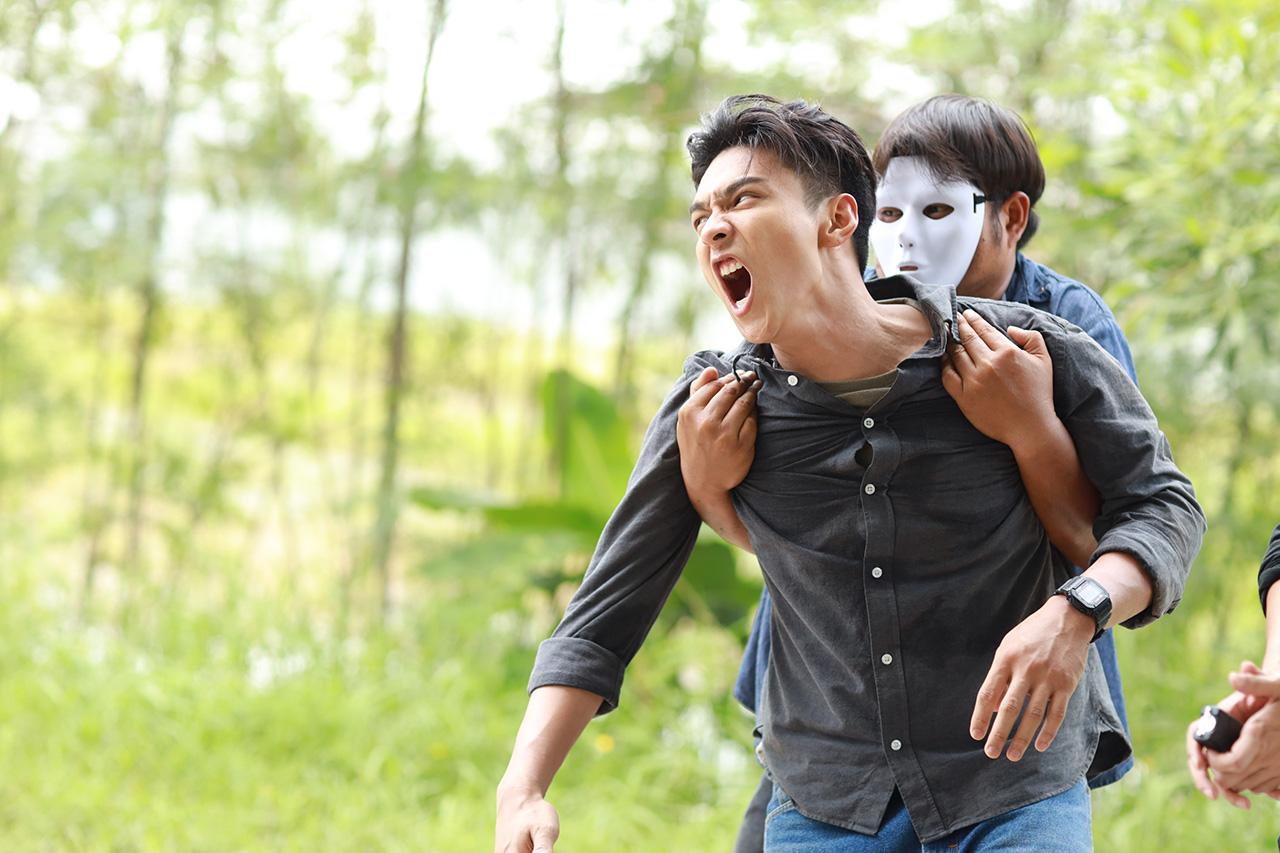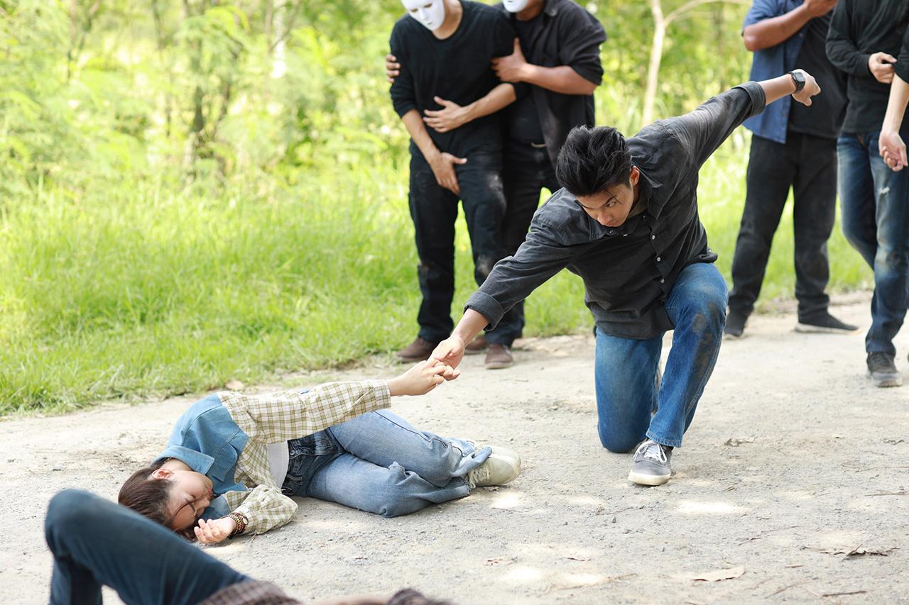 เบื้องหลังฉากนี้บอกเลยว่าไม่ธรรมดา เพราะผู้กำกับ ชัยวุฒิ เทพวงศ์ ขอถ่ายแบบลองเทคเพื่อความสมูทของภาพที่ออกมา นั่นคือทั้งโหนและสไมล์ต้องเล่นยาวตั้งแต่ วิ่งหนี ต่อสู้ และโดนจับ ทำให้นักแสดงต้องมีสมาธิกันมากเพราะนอกจากจะต้องจำบทพูดแล้ว ยังต้องจำจุดต่างๆ อีกด้วย แต่ทั้งโหนและสไมล์ก็เต็มที่ ทำออกมาภาพสวยสมใจ