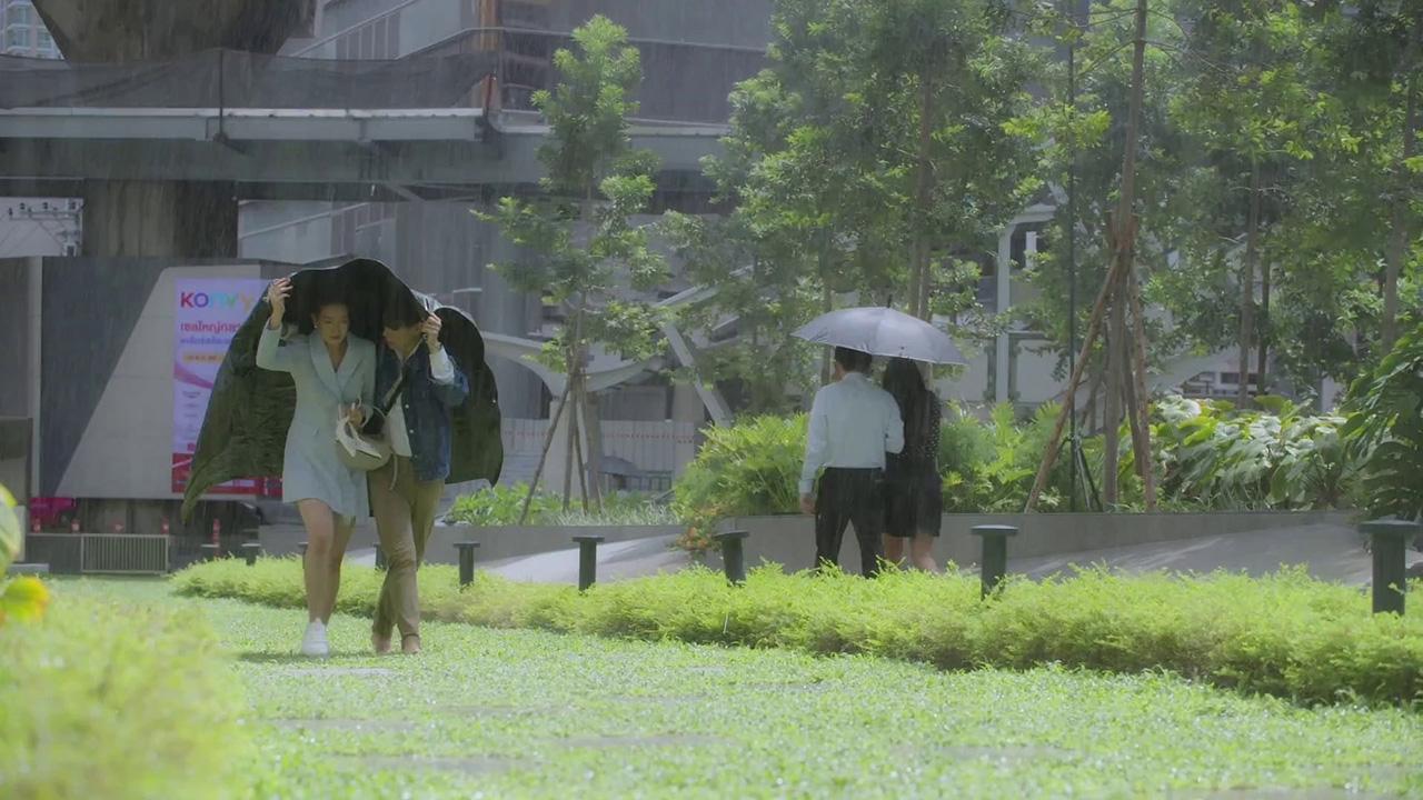 บรรยากาศการถ่ายทำชุ่มฉ่ำไปด้วยสายฝน ชนิดที่ว่าโรแมนติกไม่แพ้ซีรีส์ต่างชาติไหนๆ นางเอกคนสวย "แพนเค้ก" ประสบเหตุรองเท้าส้นสูงปักอยู่ในสนามหญ้า ต้องให้พระเอกขี่ม้าขาวมาช่วย พร้อมด้วยผ้าใบยางมาเป็นอุปกรณ์ตัวช่วยป้องกันความเปียกแนบชิดอิงแอบกันสุดๆ คอละครสายฟินจิกหมอนห้ามพลาดเด็ดขาด
