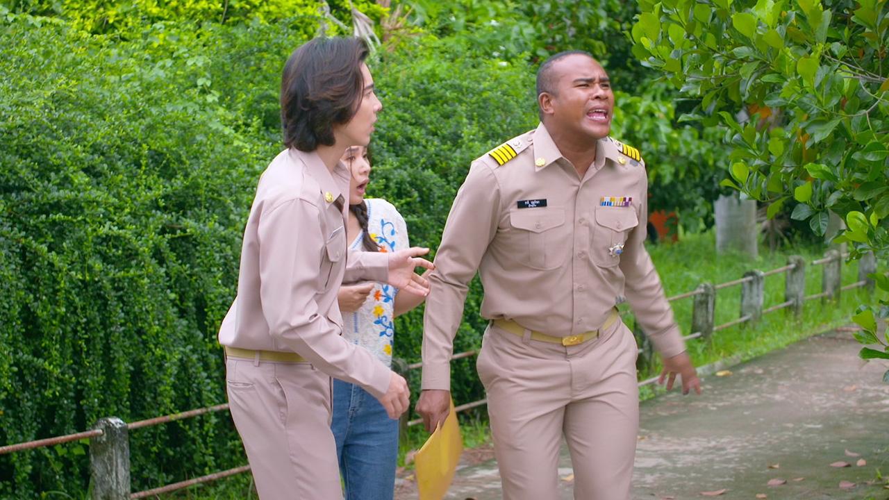 ด้านชาวบ้านเมื่อรู้ข่าวคอร์รัปชันของผู้ใหญ่สมบูรณ์ ก็พาลโกรธ ลีน่า และ ข้าวใหม่ พากันรุมปาโคลนใส่ ทำให้ทั้งสามต้องพากันวิ่งหนี ผู้ใหญ่ลี ไปทาง ส่วน แบงค์ กับ ข้าวใหม่ ก็จับมือกันวิ่งไปอีกทาง และพากันไปหลบในบ้านร้าง และได้ใกล้ชิดกันจนเริ่มหวั่นไหว แต่งานนี้ ลีน่า ที่วิ่งหนีไปอีกทาง ก็แอบไปเห็นมัคนายกที่กำลังโดนแก๊งทวงหนี้ตามทวงเงินพอดี ลีน่า จึงวางแผนการบางอย่าง เพื่อให้มัคนายกยอมรับสารภาพผิด ที่ทำให้ ผู้ใหญ่สมบูรณ์ ต้องติดคุกในคดีคอร์รัปชัน