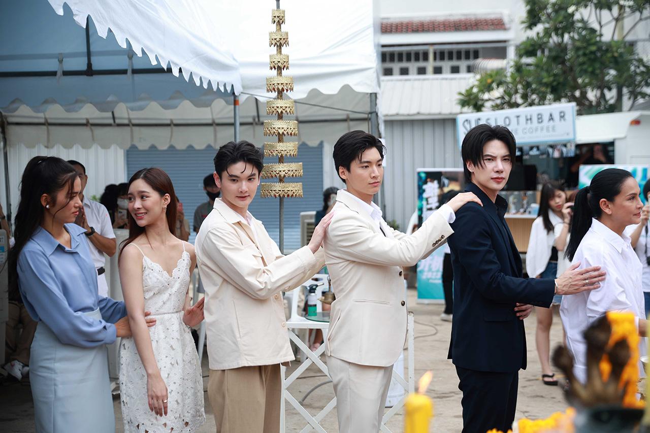 บรรยากาศภายในงานบวงสรวง "หลังคาใบบัว" จัดเต็มด้วยทัพนักแสดงจัดหนักจัดเต็มทั้งรุ่นเล็ก รุ่นกลาง รุ่นใหญ่ คืนกำไรให้แฟนละครอย่างเต็มที่ อบอุ่นด้วยเหล่าแฟนคลับแม่จีนที่ส่งฟู้ดซัพพอร์ตมาเป็นกำลังใจให้นักแสดง นำทีมนักแสดงโดยนางเอกขาวโอโม่ "เกรซ กาญจน์เกล้า" และ คู่จิ้นคู่ใหม่ "ไม้ วฤธ" ร่วมด้วยหนุ่มหล่อที่มีแฟนอินเตอร์แน่นๆ จุกๆ "ปอนด์ พลวิชญ์" และ "แม็กซ์ ณัฐพล" ที่ปรับโหมดจากงานซีรีส์สายวาย สู่โหมดละครดราม่าเข้มข้น เสริมทัพด้วยรุ่นใหญ่มากฝีมือ "หนุ่ม สันติสุข, ปู นาตยา, โจม ศุกล, เง๊ก กัลยา, ลูกน้ำ พาเมล่า, วอ จิราวัฒน์" พร้อมสาวแซ่บไฟแรงสูง "ติช่า กันติชา" (ติช่า The Face) ปิดท้ายด้วยคลื่นลูกใหม่นักแสดงจากสังกัด CHANGE2561 "ไทเกอร์ ธนวัต" และ "เซญ่า พิมพ์มาดา" และผู้กำกับงานละเอียด "ชู-บุญธร กิติพัฒฑากรณ์" ครบถ้วนองค์ประชุมความแซ่บ